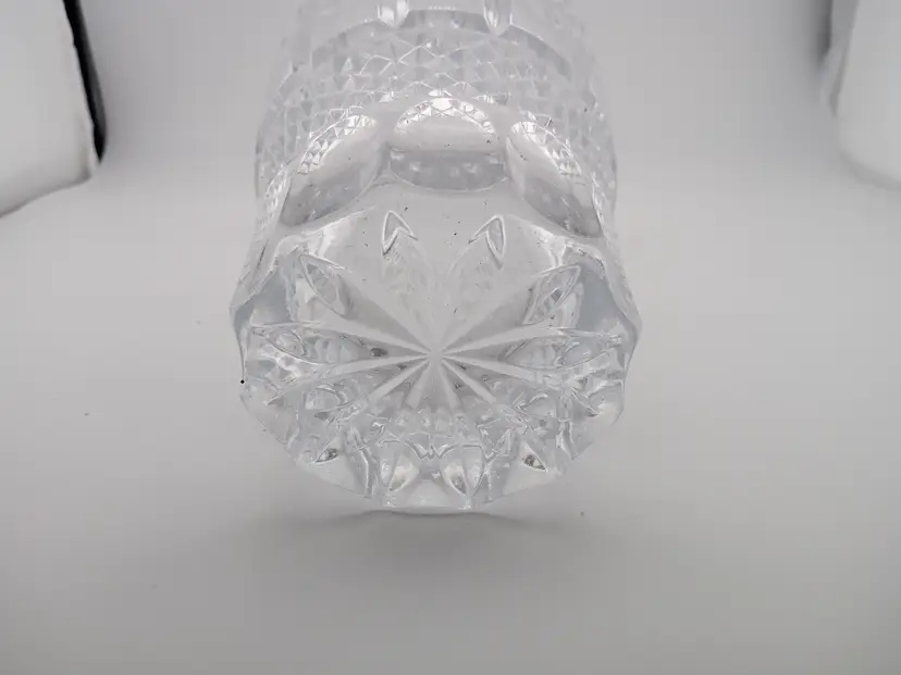 This is a stunning French crystal from the 1970s. It is about 10" tall and has the most spectacular pattern and cut work--photos do not do it justice! It's in excellent vintage condition with one flea bite on the side.