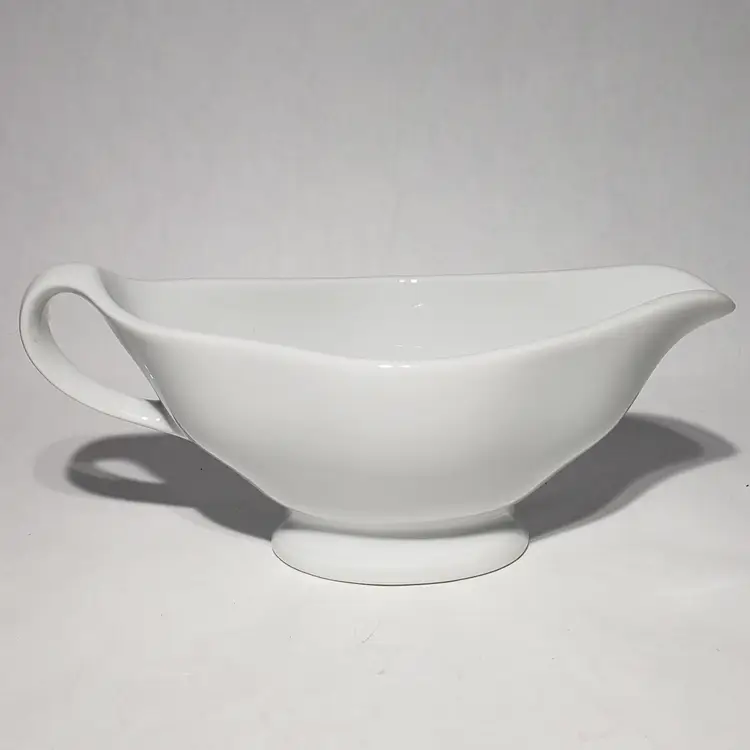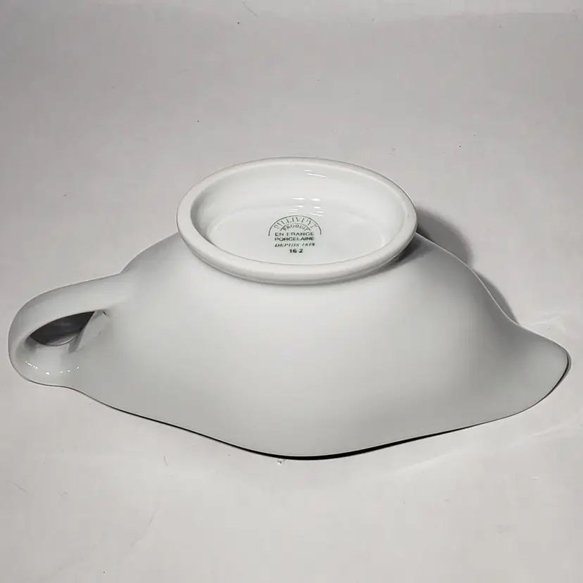 Pillivuyt White Porcelain Gravy Boat France Measures: 8.25" x 3.75" x 3.25" Pre-owned, but like new. No chips or cracks.