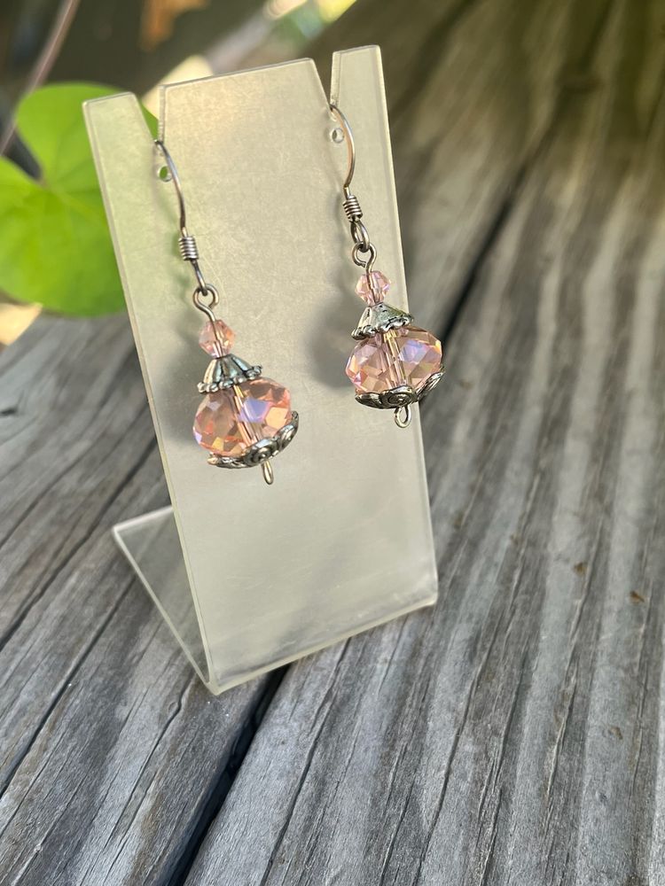 A pair of pink crystal earrings. The ear wires are 925 sterling silver. 8 mm Austrian Crystal.