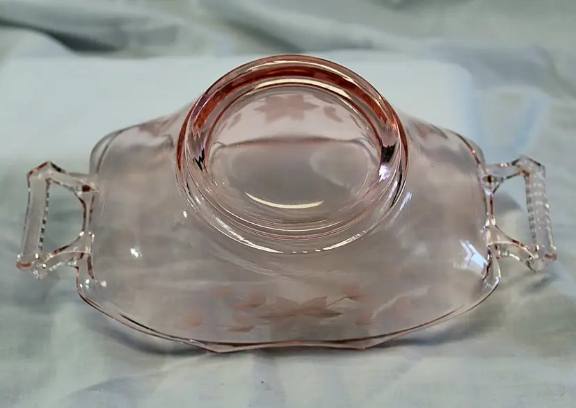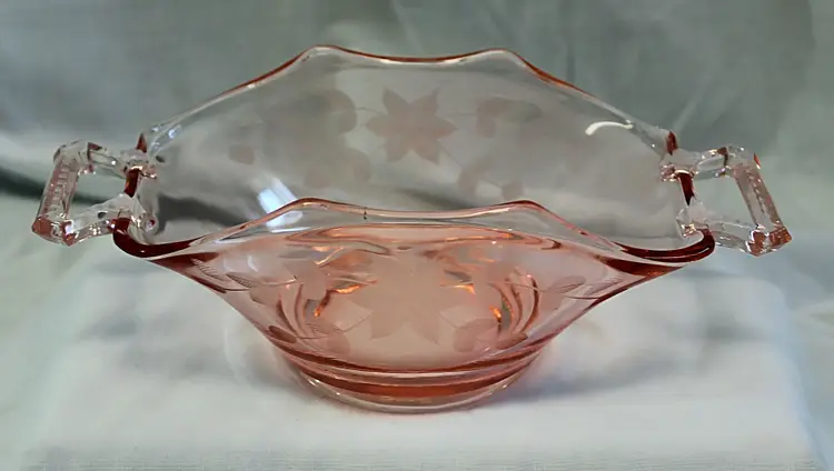 Pink Depression Glass Etched Straight Sided Handled Bowl 8" X 4"