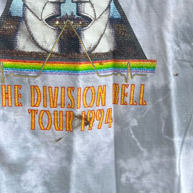Pink Floyd the division Bell tour, 1994. White and gray tie-dye shirt. Fashion tea 2021. Size medium large. Pit pit is 21 inches length is 26 inches.
