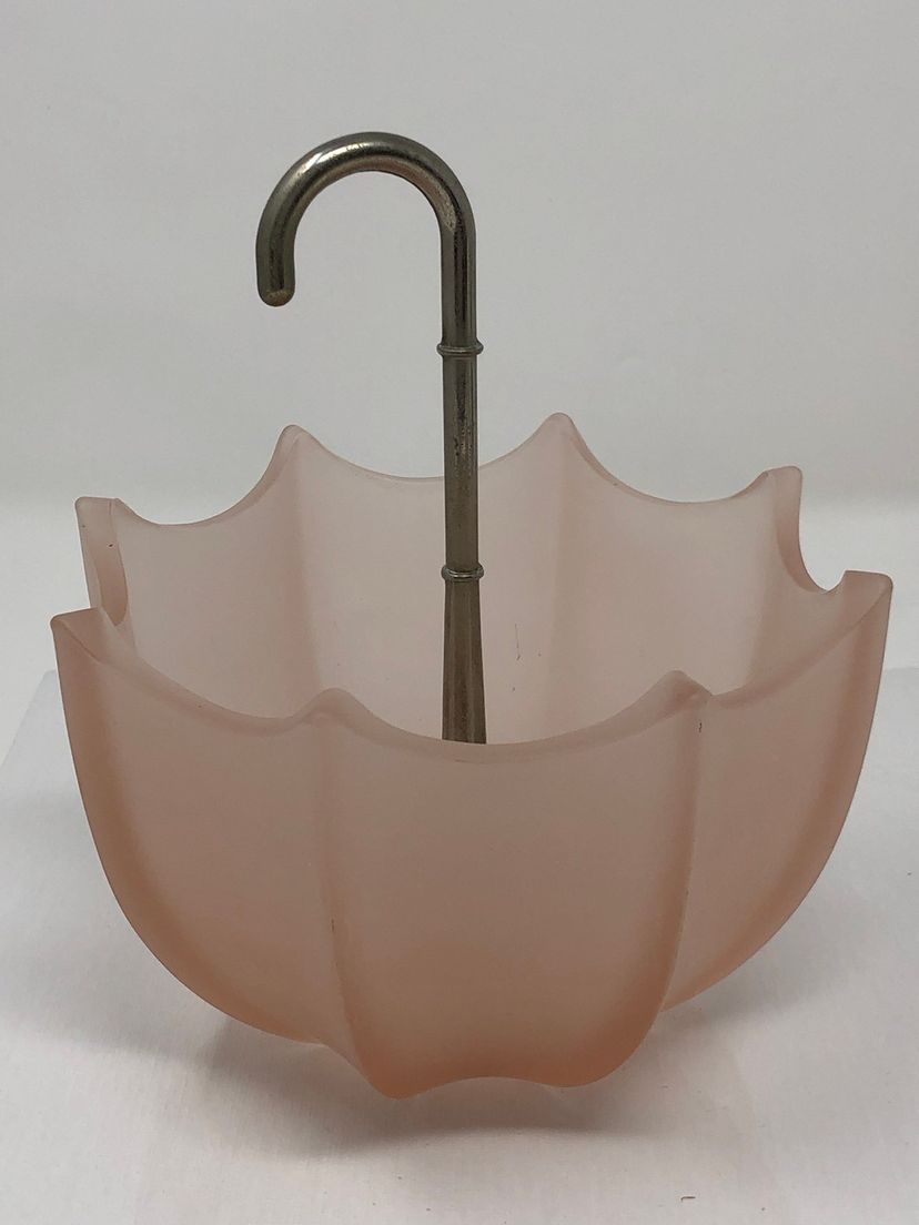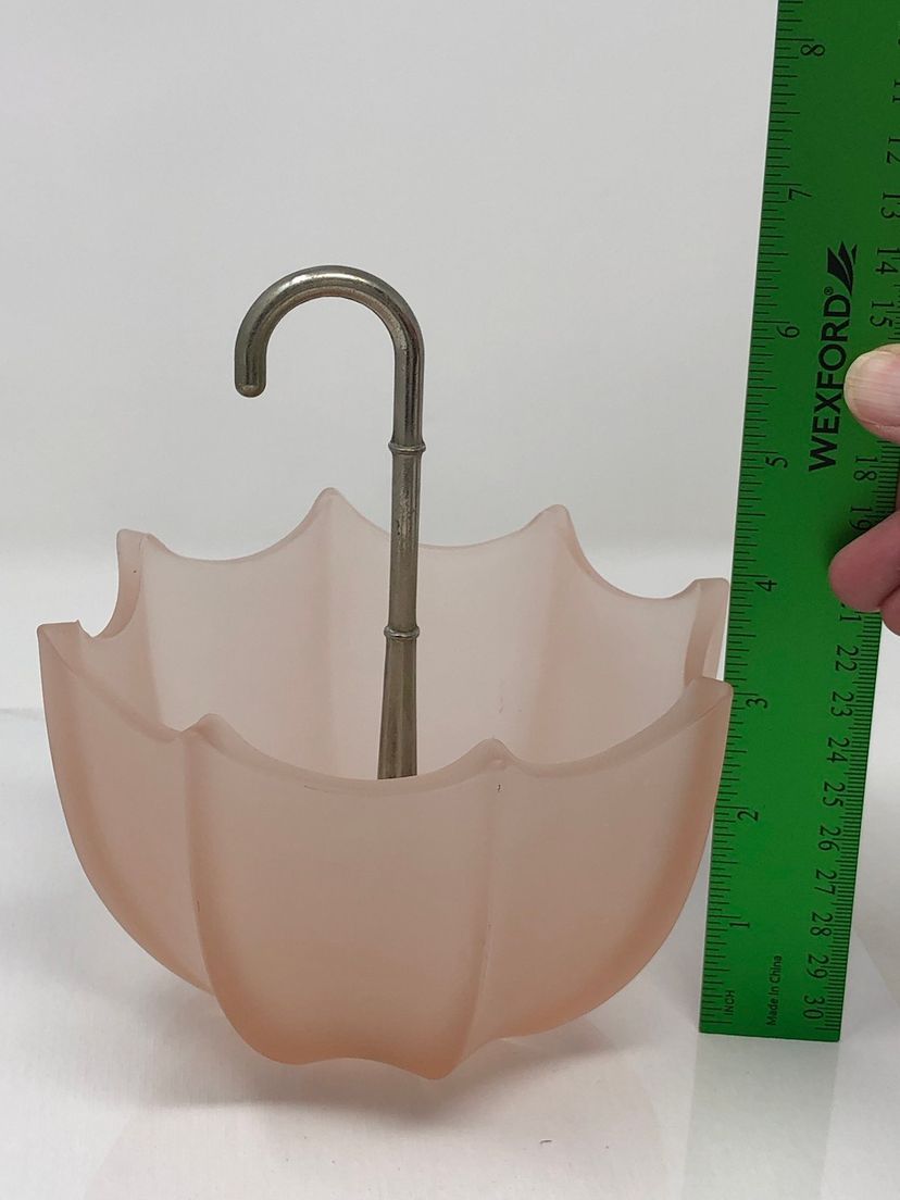 5 1/4" pink satin glass upside down umbrella Parasol Tidbit from Home Interiors. No chips or cracks, no markings or labels