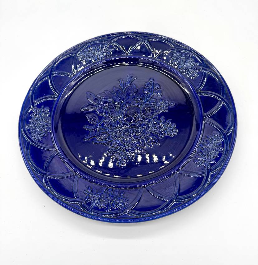 Plate Platter - Vintage Ceramic Bordallo Pinheiro Blue Majolica - 13” W