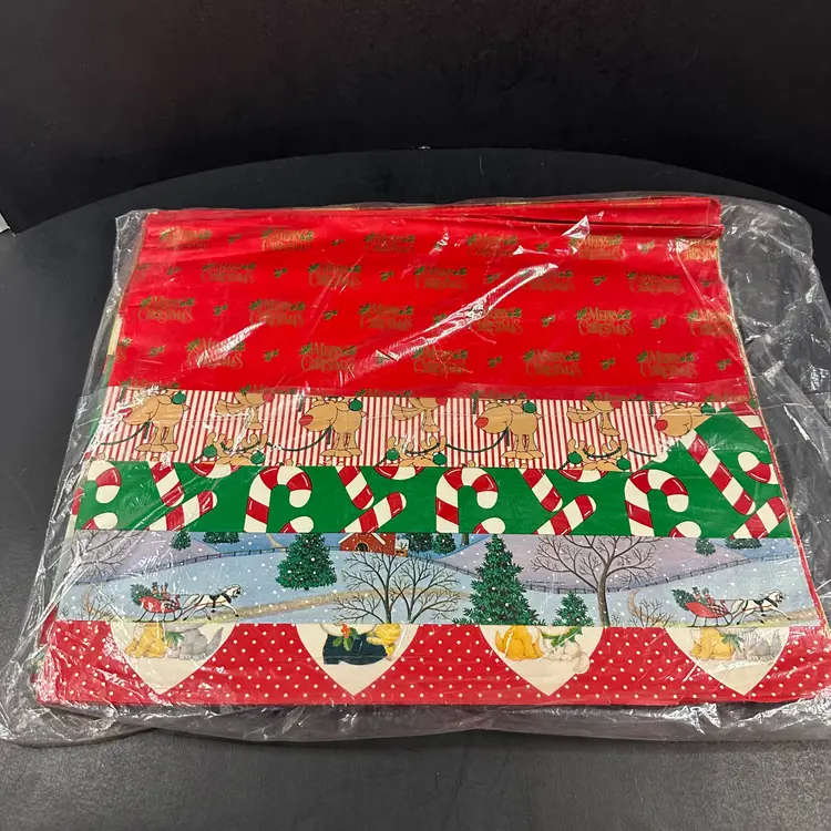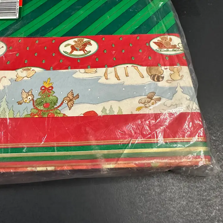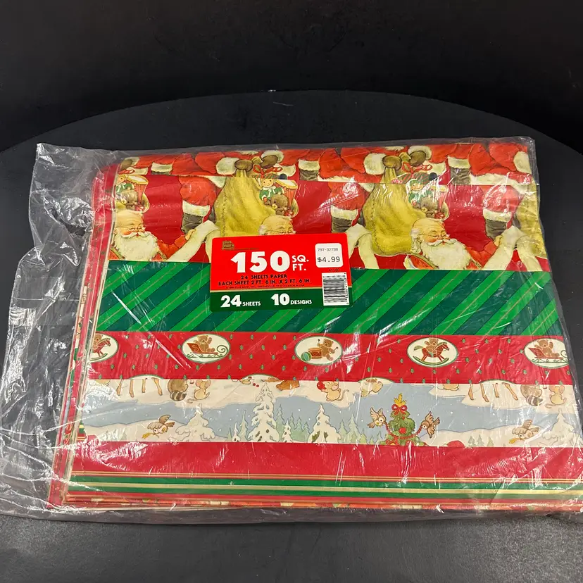 Vintage Plus Mark Christmas Flat Wrapping Paper 150 sq feet, 24 30x30 sheets, 10 Designs in like new condition. In sealed original but weathered packaging. Unopened, unused. Please see photos for all the details.