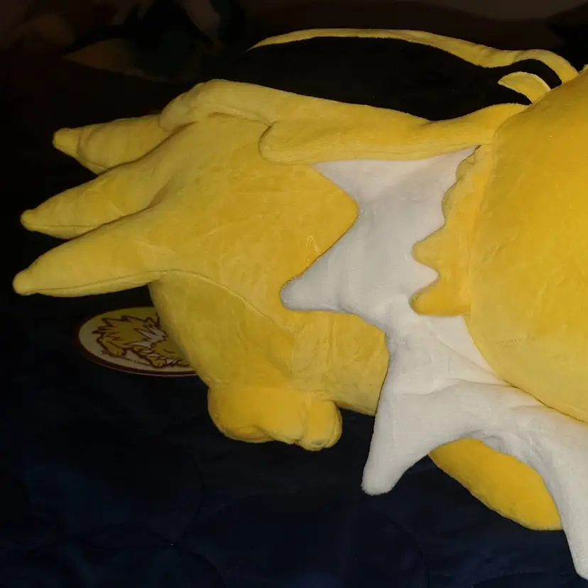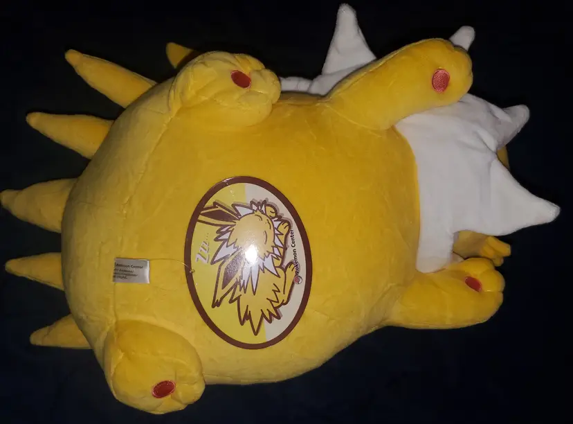 One of the most popular Eeveelutions, Jolteon, this soft sleeper plush is a perfect addition to any Pokemon collection. This is a Pokemon Center Original, with the official tag included. This is a great gift for any Pokemon fan. An authentic, original, with tags included, Pokemon Center original sleeper plush. These hard to find, sought after sleeper plushes, make a perfect addition to any Pokemon collection. You'll be surprised how big and soft these plushes are in person! This plush toy is brand new. This plush toy is brand new and the dimensions are approximately 45 x 34 x 21 CM. Celebrate your love for Pokemon by getting your favorite one as a stuffed plush! If you have any questions, please don't hesitate to ask!