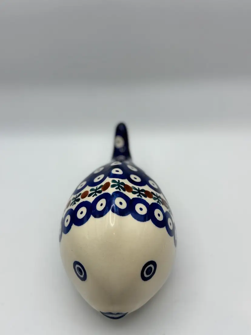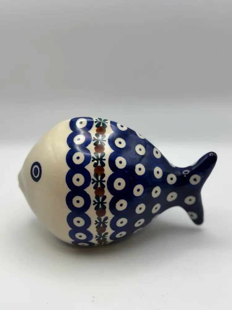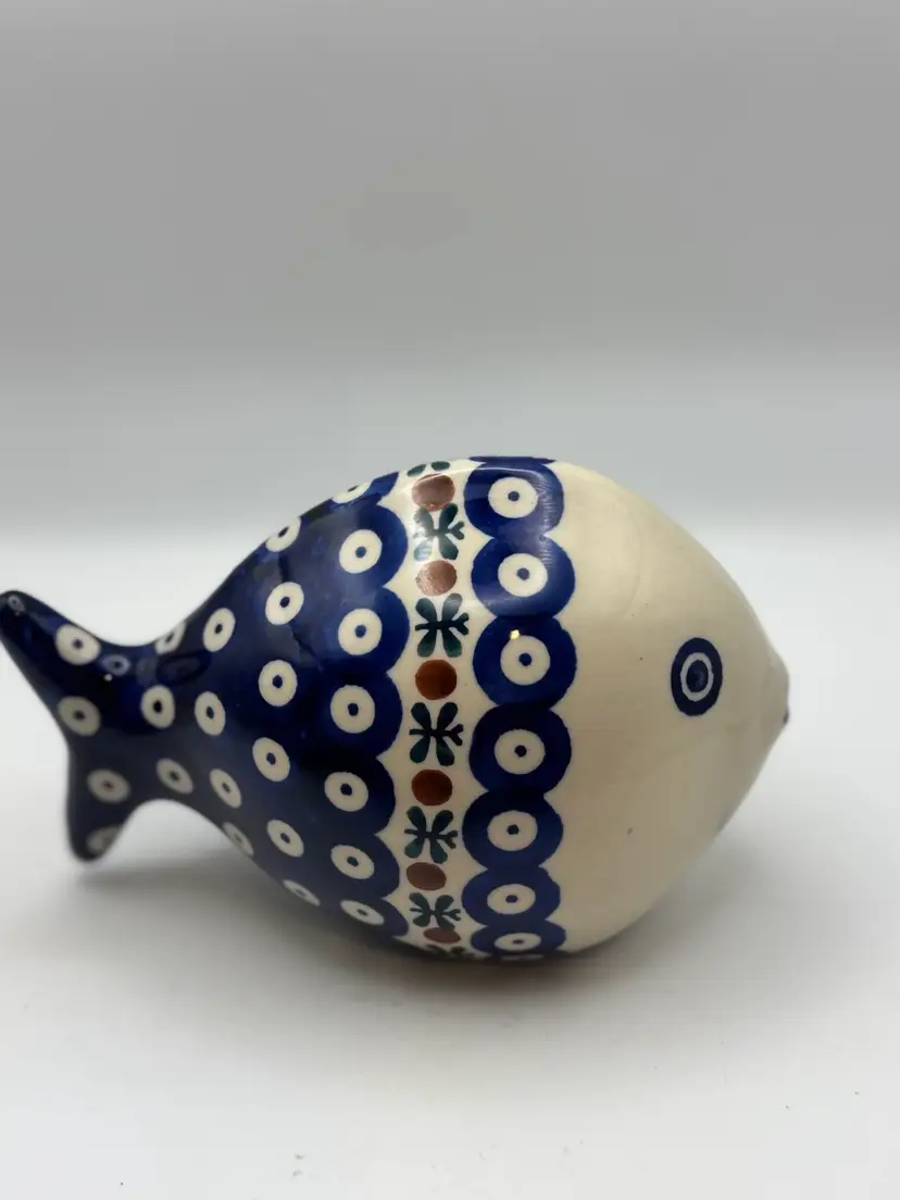 Polish Pottery Fish Figurine Vintage Mosquito Pattern 6” X 4”