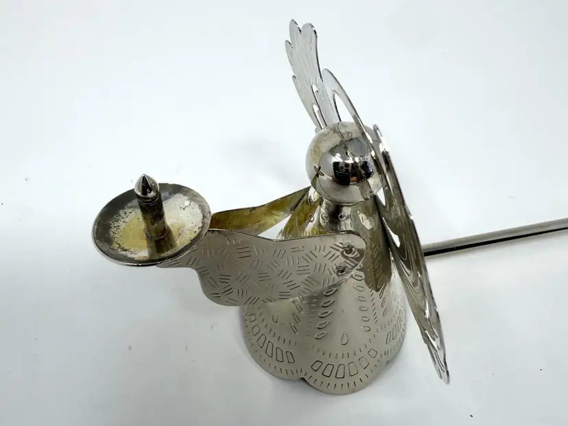 Angel candle tools were beloved in late 20th-century décor for their peaceful symbolism and reflective beauty — this example embodies that tradition with simple grace.