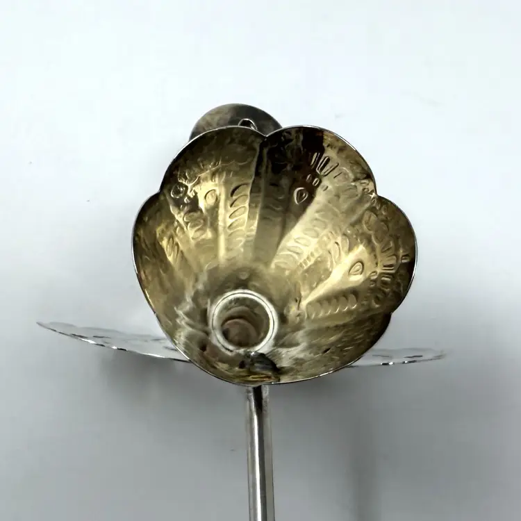 Details - Type: Candle Snuffer / Décor Accent - Material: Silver-tone metal - Finish: Polished, etched pattern - Markings: None - Era: c. 1990s - Color: Bright silver - Size: 9 L × 2.2 W × 2.5 H in - Condition: Minor wear, no dents or structural issues