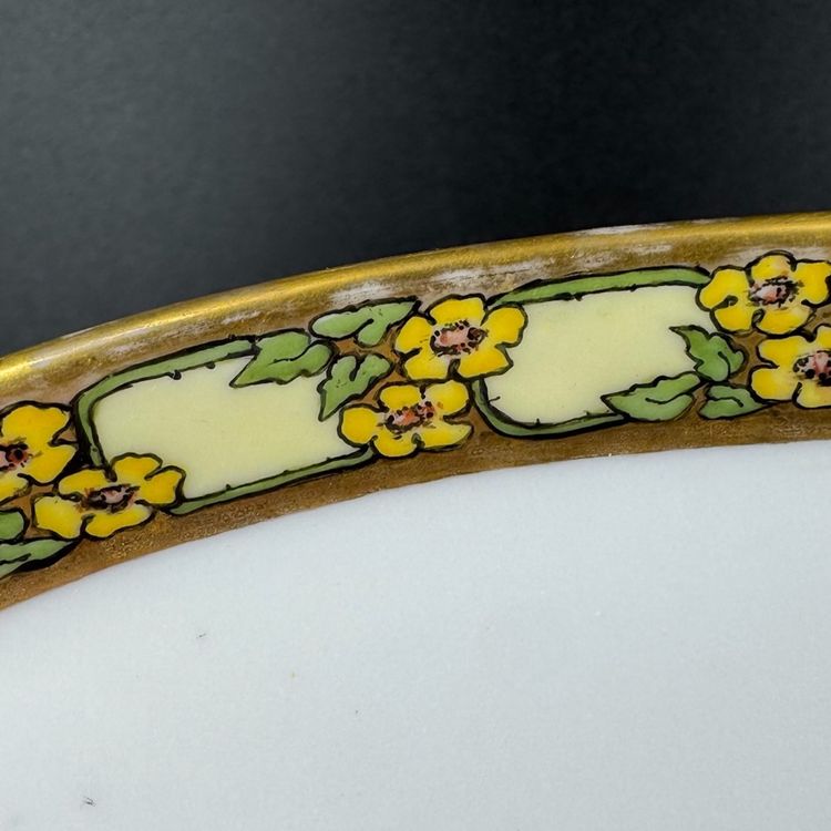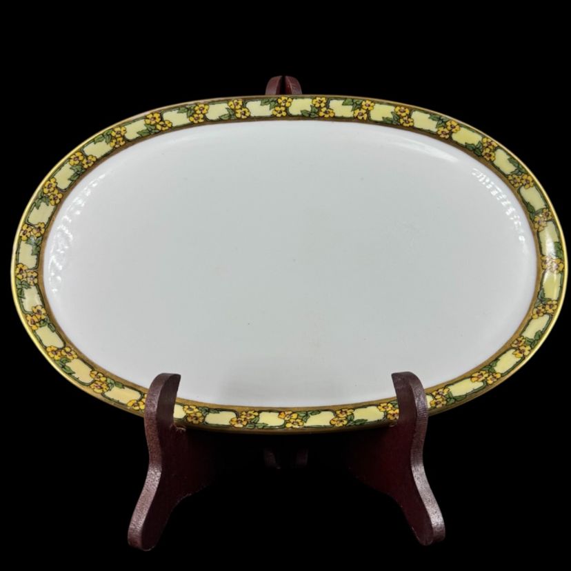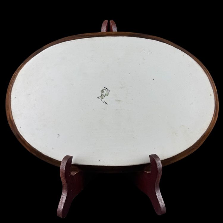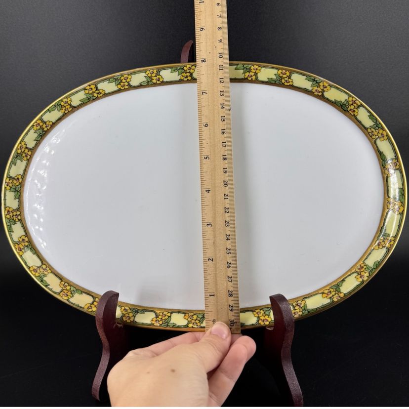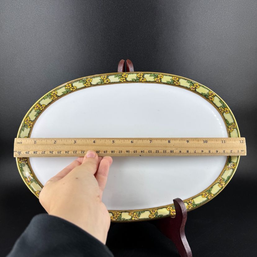 This Porcelain Hand Painted Vanity Tray is approximately 12” in length. There are NO chips or cracks anywhere. It does have some wear in the home luster around the rim which can be seen in the photos l. It is marked on the bottom “VIENNA AUSTRIA” can be seen in the photos.