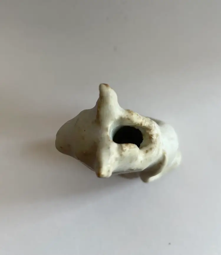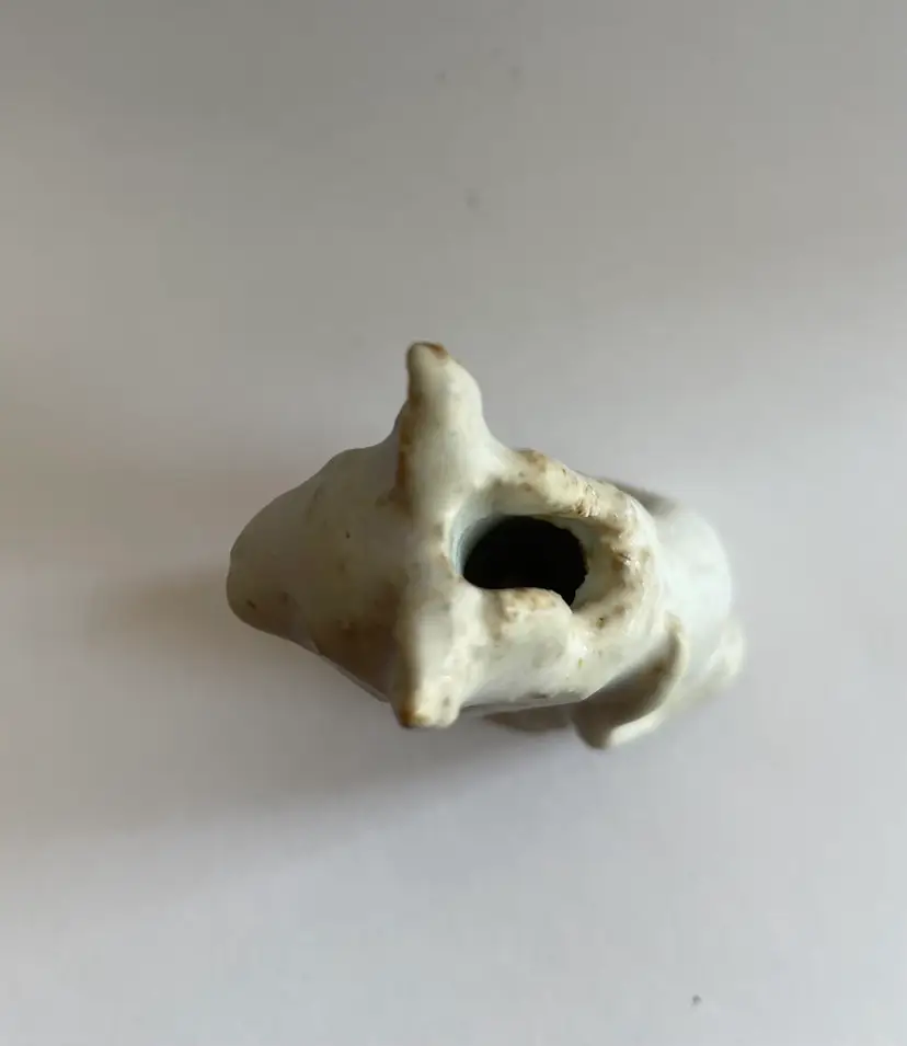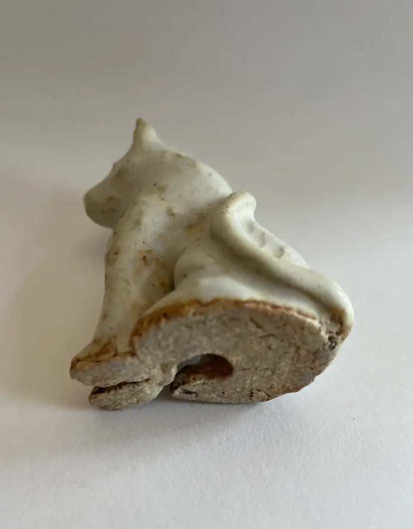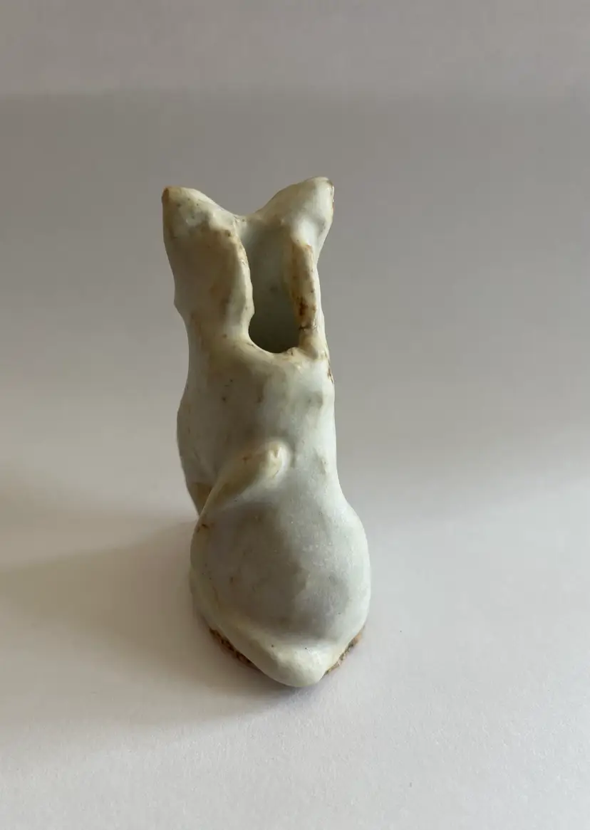 Stoneware cat bead mottled clay and Gray. Doubled fired bisque bottom. Approx 6 cm tall x 4.5 cm wide, Opening approx 1 cm. Made for Macrame. Made in Arizona Thunderhead Studio.