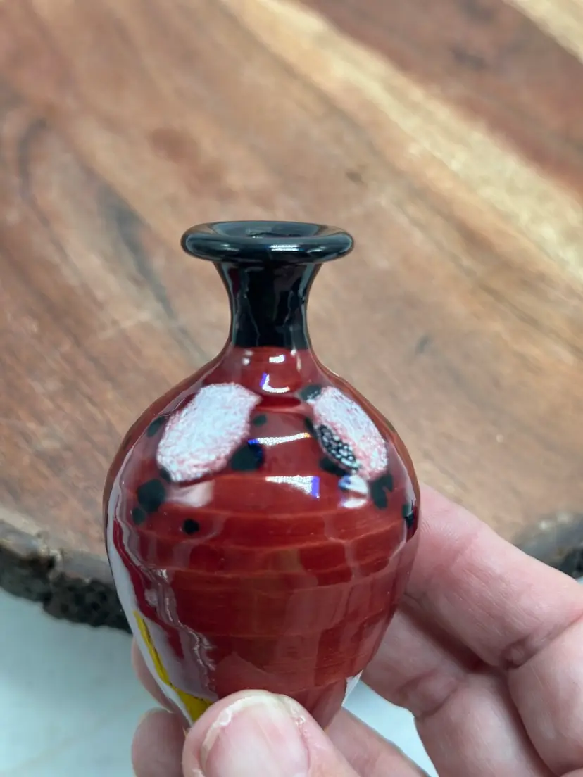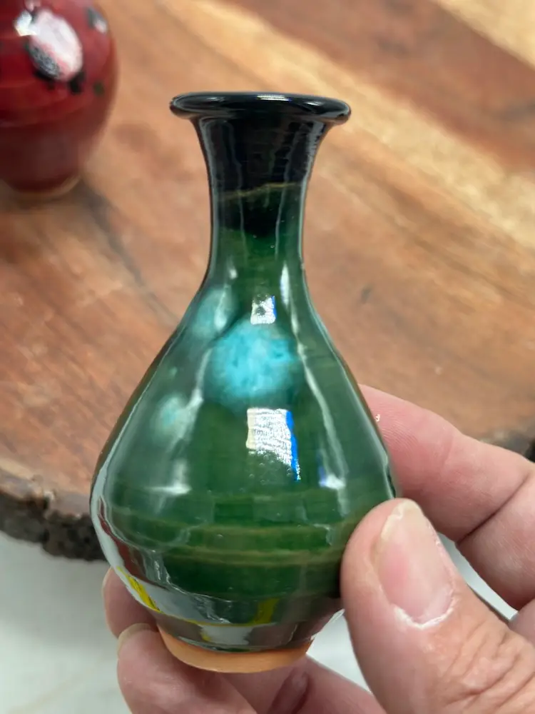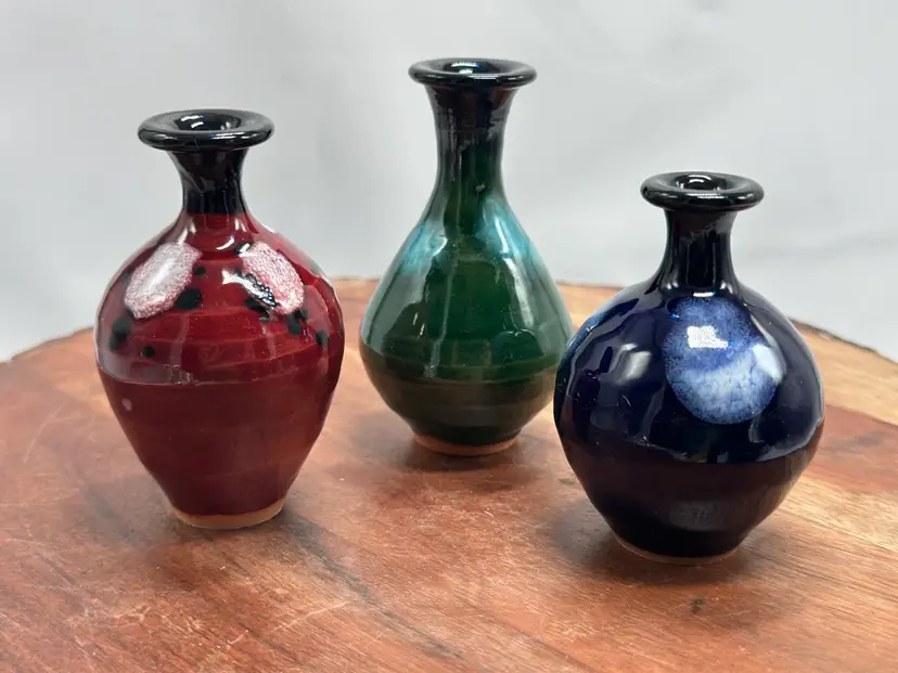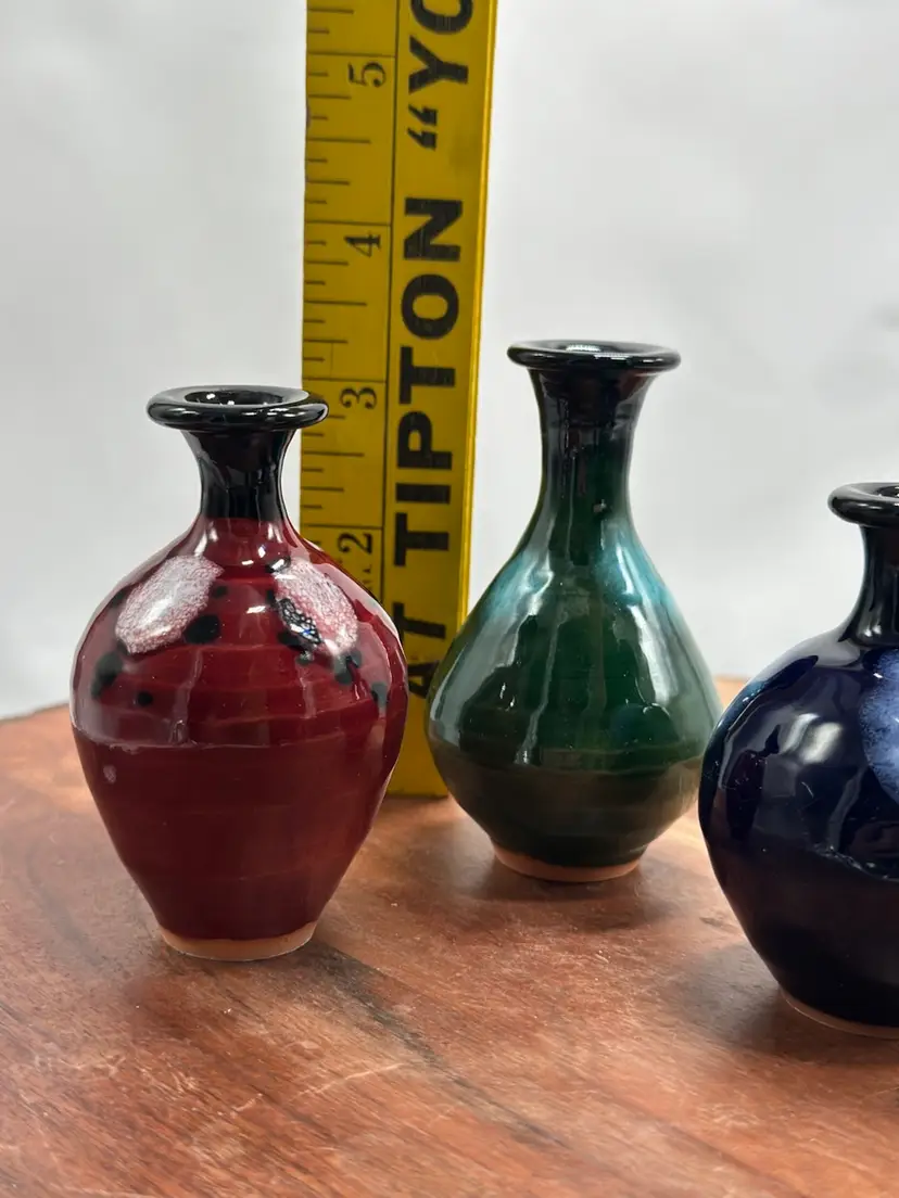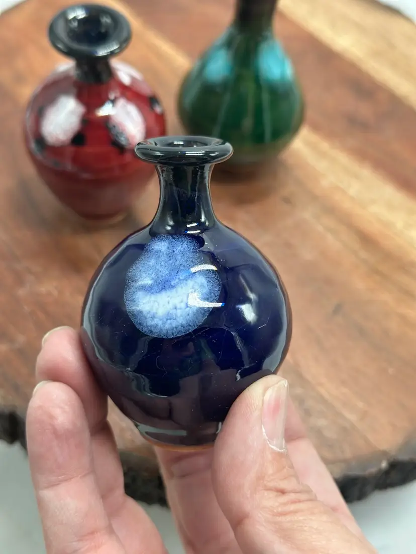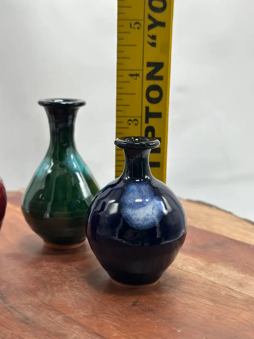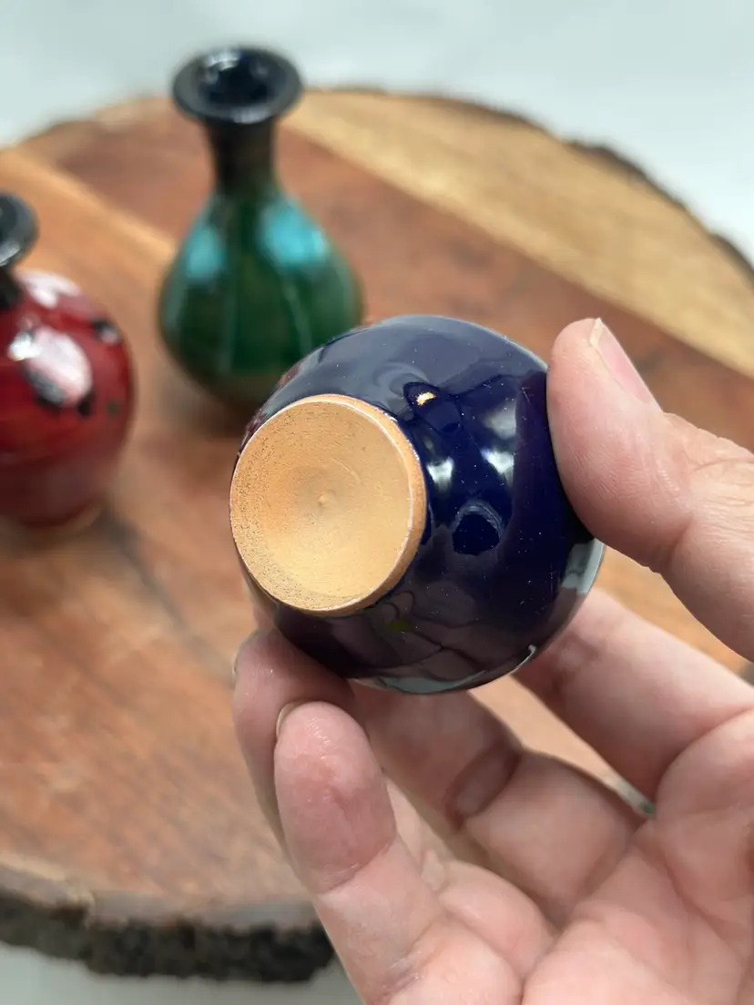 Pottery Miniature Mini Vase Set Oxblood, Navy & Green Glaze Vase Set