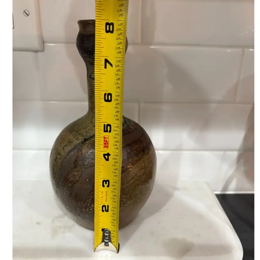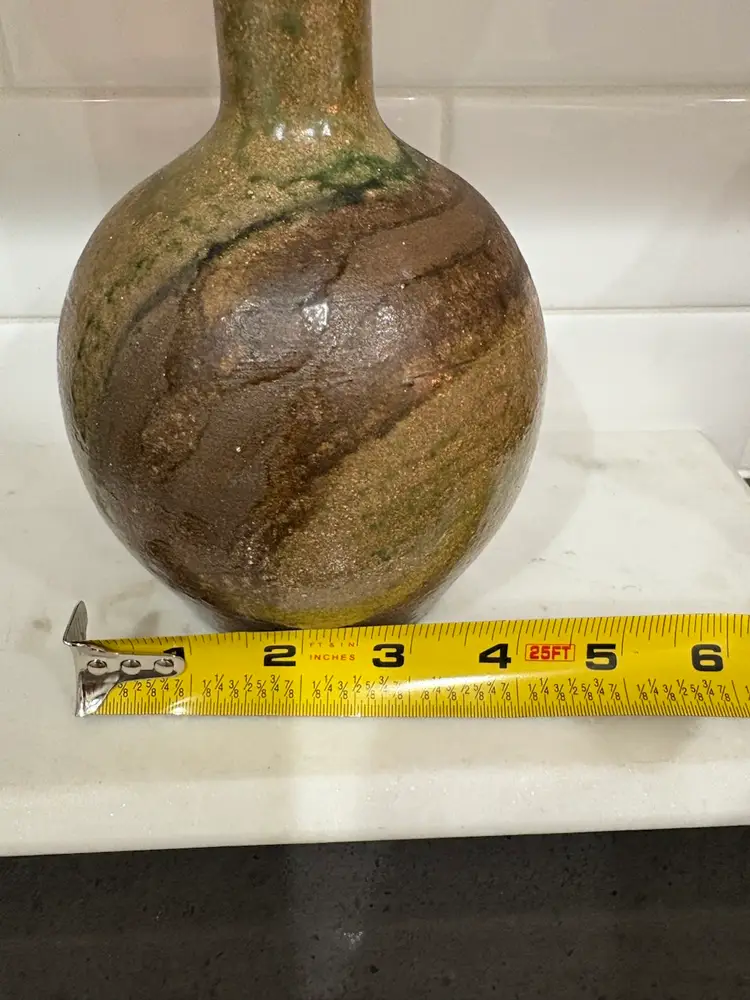 Pottery Vase Brown And Gwen Glaze Signed By Artist