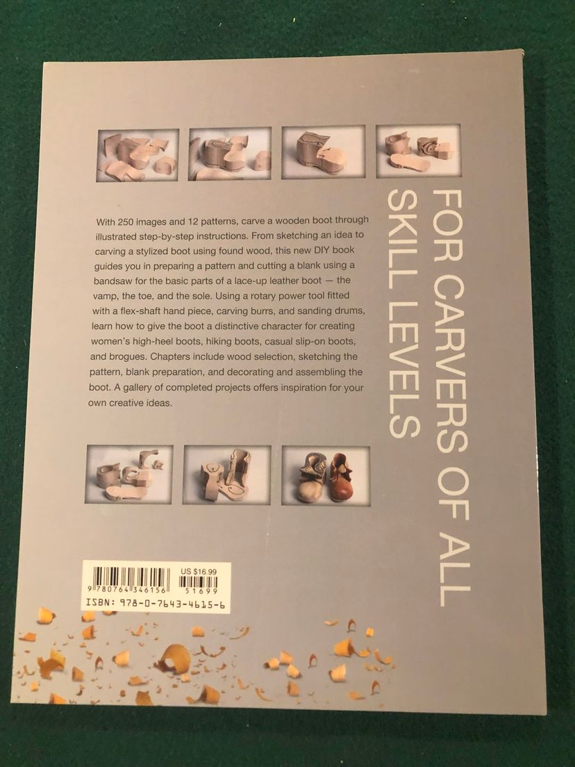 About the book: With 250 images and 12 patterns, carve a wooden boot through illustrated step-by-step instructions. From sketching an idea to carving a stylized boot using found wood, this new DIY book guides you in preparing a pattern and cutting a blank using a bandsaw for the basic parts of a lace-up leather boot -- the vamp, the toe, and the sole. Using a rotary power tool fitted with a flex-shaft hand piece, carving burrs, and sanding drums, learn how to give the boot a distinctive character for creating women's high-heel boots, hiking boots, casual slip-on boots, and brogues. Chapters include wood selection, sketching the pattern, blank preparation, and decorating and assembling the boot. A gallery of completed projects offers inspiration for your own creative ideas. For carvers of all skill levels.