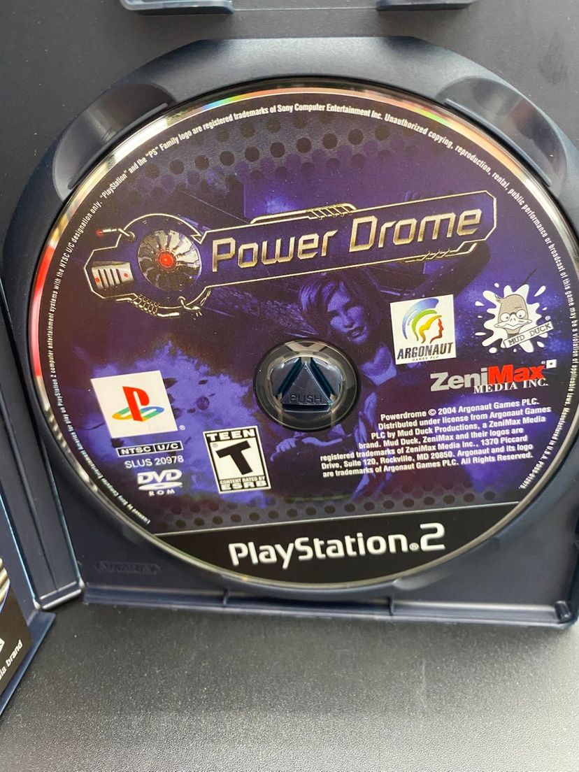 You are purchasing one Power Drome PlayStation 2 Video Game by Mud Duck and ZeniMax from 2004. This Game is in overall great condition. No chips or cracks on the Case. No rips or stains on the Manual. Minimal signs of wear on the Disc, tested in playable condition without issues.