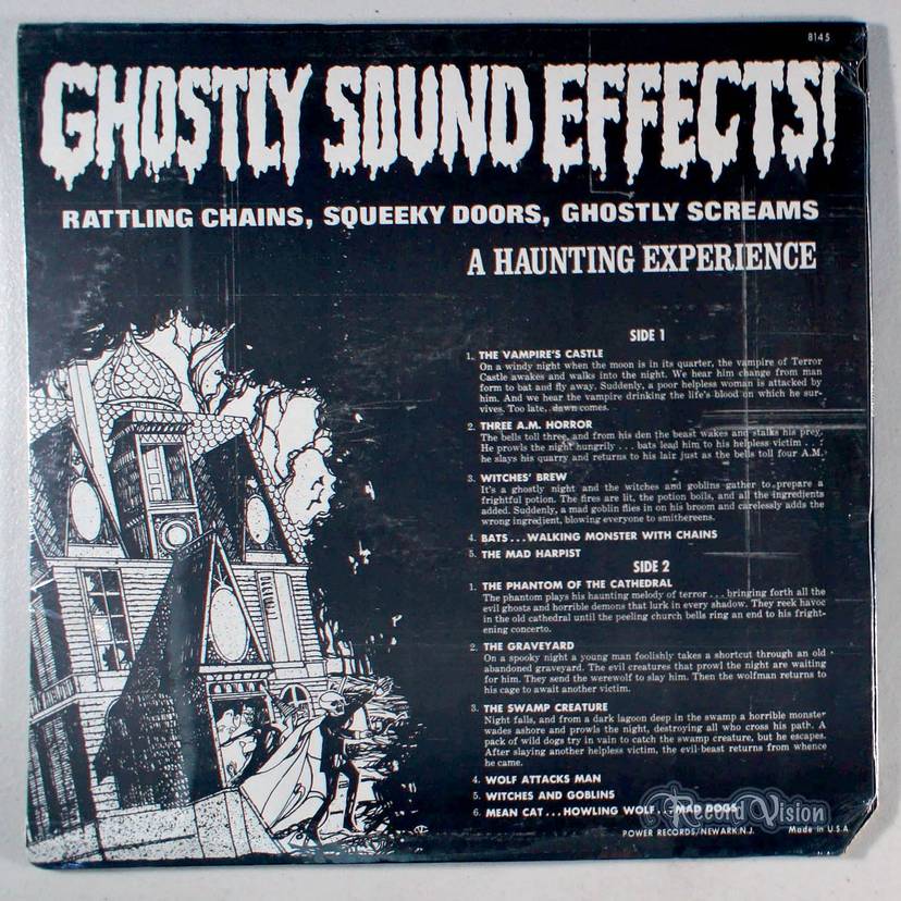 Ghostly Sounds, from Power Records, is rattling chains, squeaky doors, ghostly screams and other sound effects for a haunting experience.