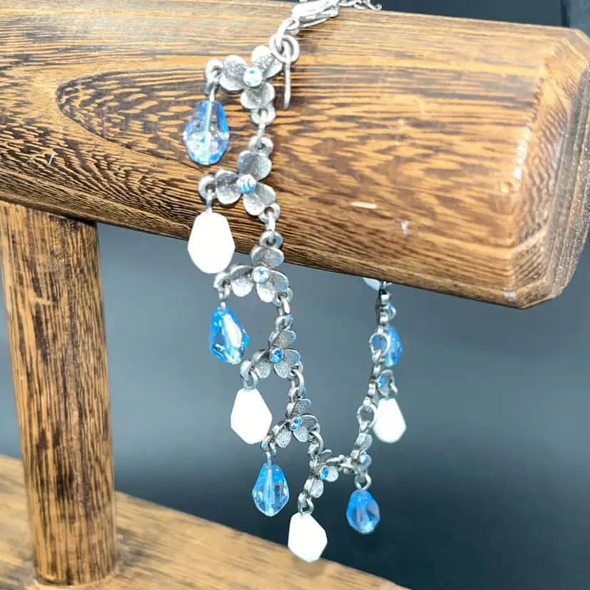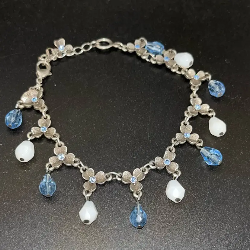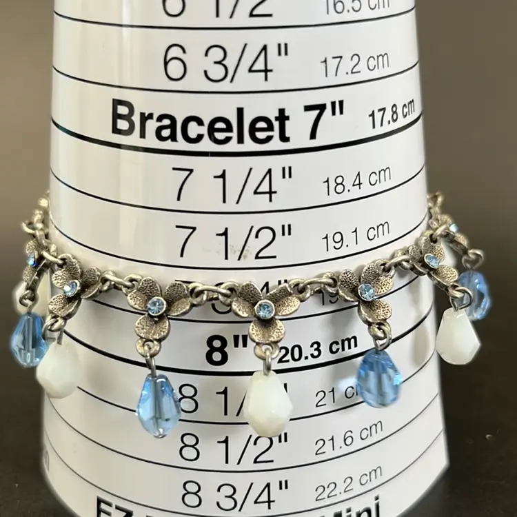 Premier Designs, Floral Bracelet With Milk And Baby Blue Teardrop Stones 7 1/2” Long