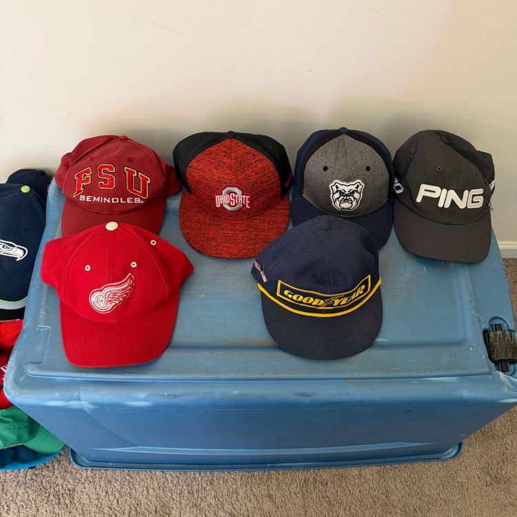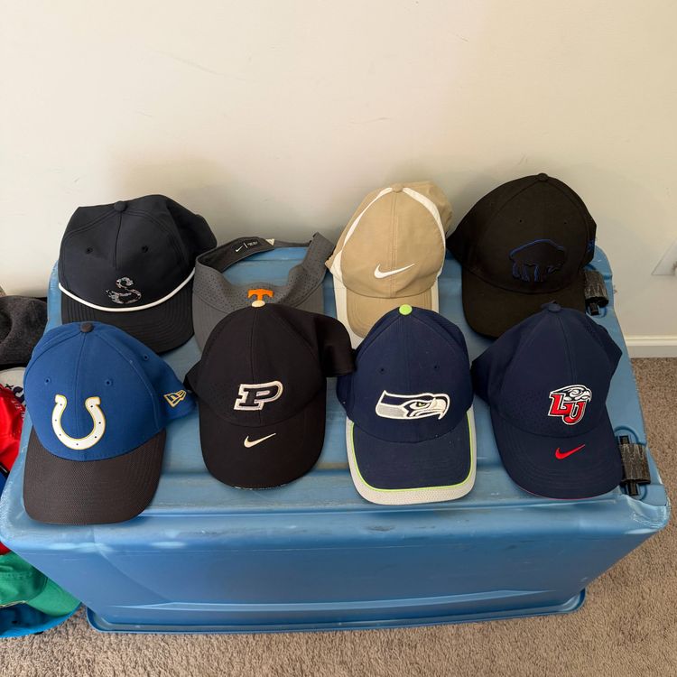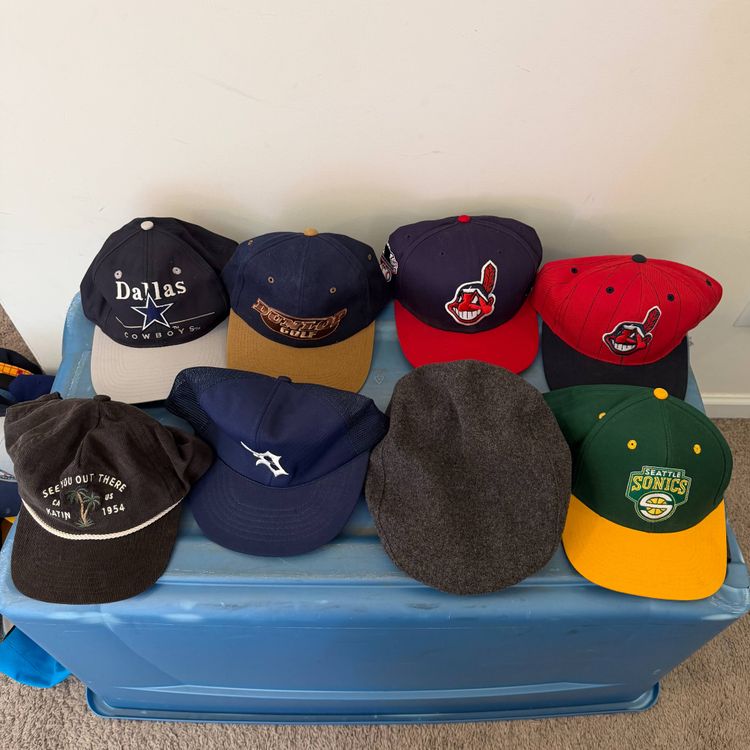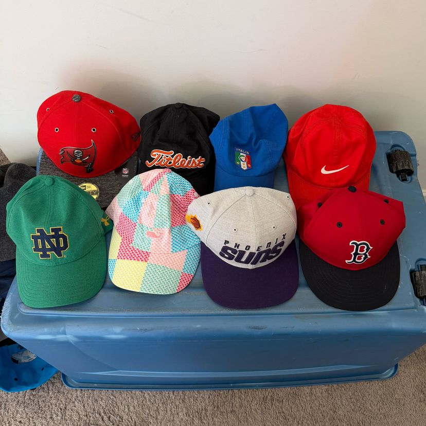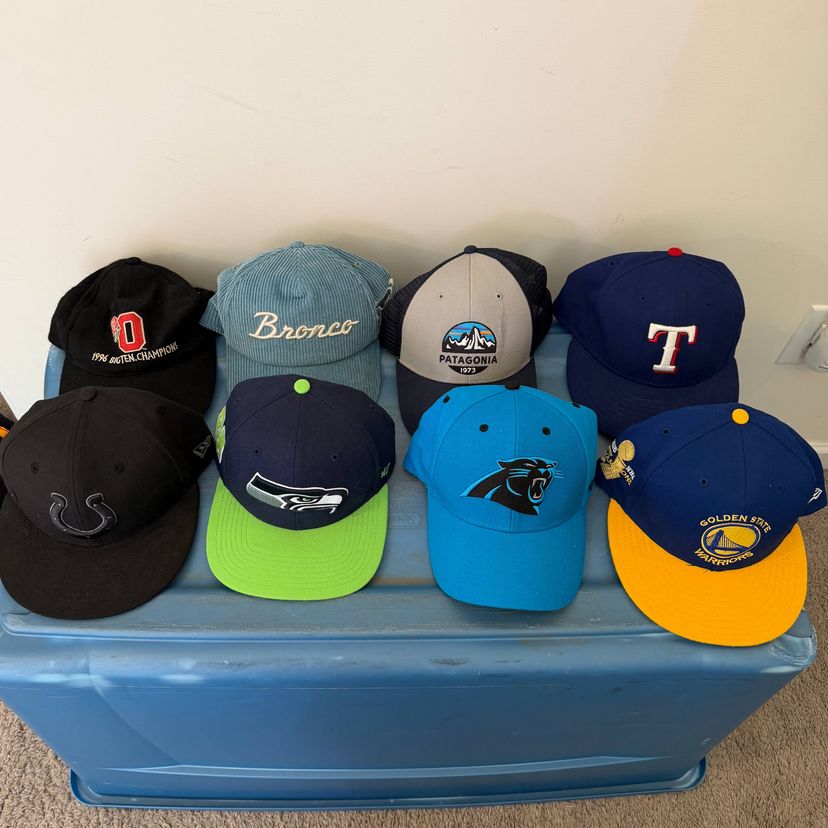 48 Hats all pictured above. Most a ready to be listed and sold. a few may need some cleaning. New Patagonia hat, The Disney woody hat has some very interesting comps on ebay. Mix of some vintage hats as well. Nike, New Era, '47 for majority of the sports hats.