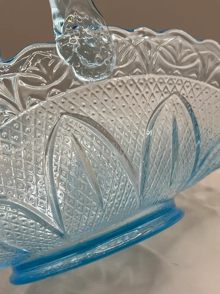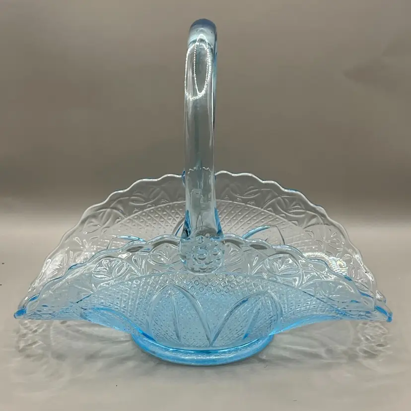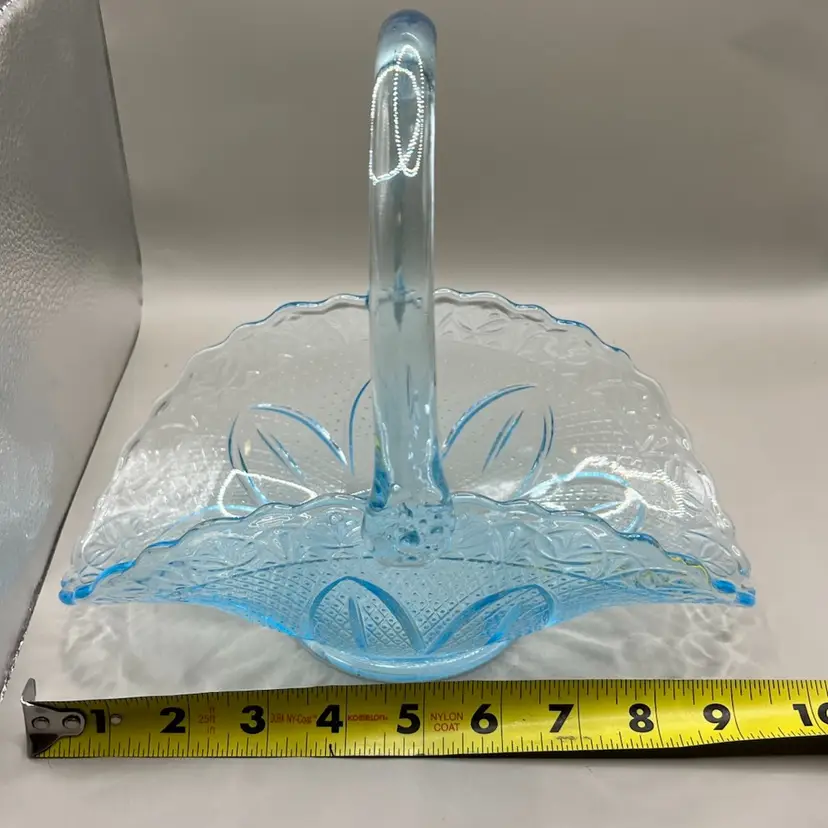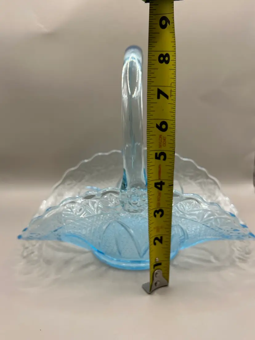 Princess House Ice Blue Glass Basket “Capri” 9.75”