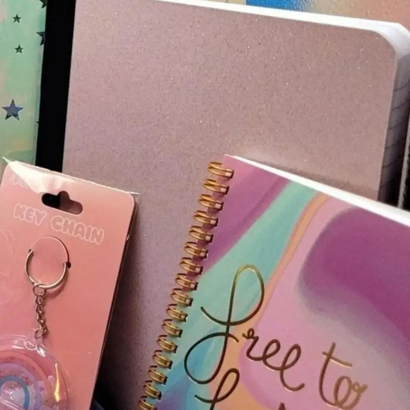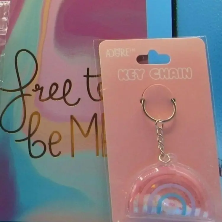 Star Irridescent folder light purple glitter composition notebook Free to Be Me noteboom Purple rainbow π Zipper bag Rainbow pen Rainbow prism necklace, rhinestone studded earrings Rainbow key chain