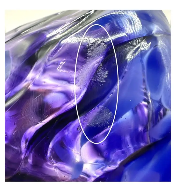 The vase measures 6.5” tall - it has a small manufacturing flaw near the top of the vase with some missed polishing, it almost looks like fingerprints, but no chips, cracks or damage. I have taken a close-up of the area. It has minor scuffs on the underside from moving across a table or shelf, and very minor scuffs near the base.