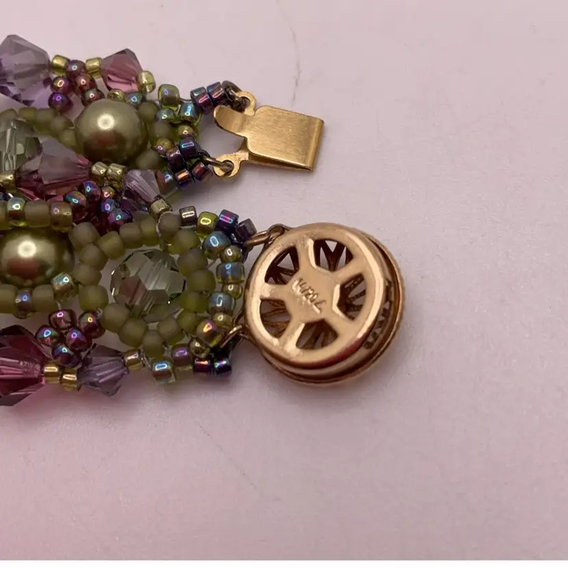 Clasp marked gold filled. From an artist's Estate in Southern California. In addition to beadwork, she was a professional porcelain painter.