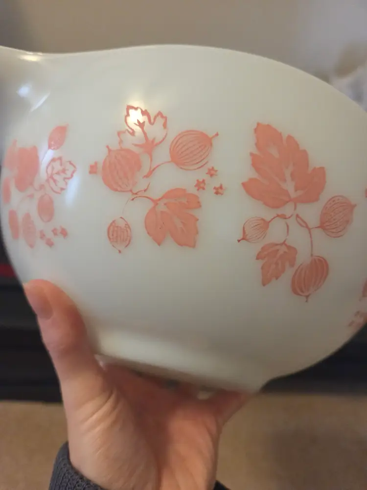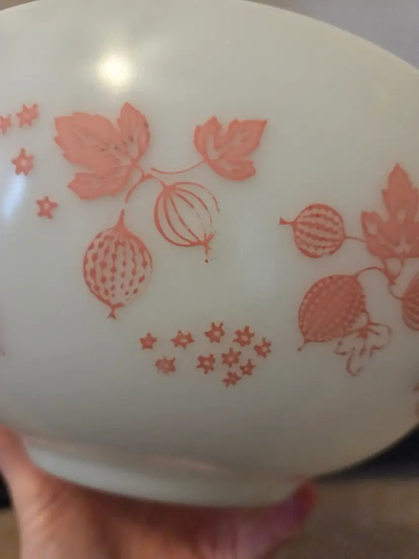 Pyrex Pink on white Gooseberry 443 Cinderella Mixing Bowl 2 1/2 Qt USA
