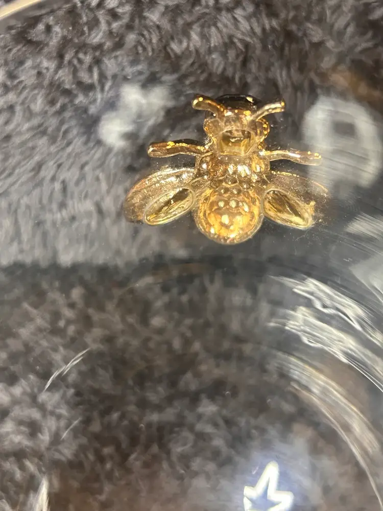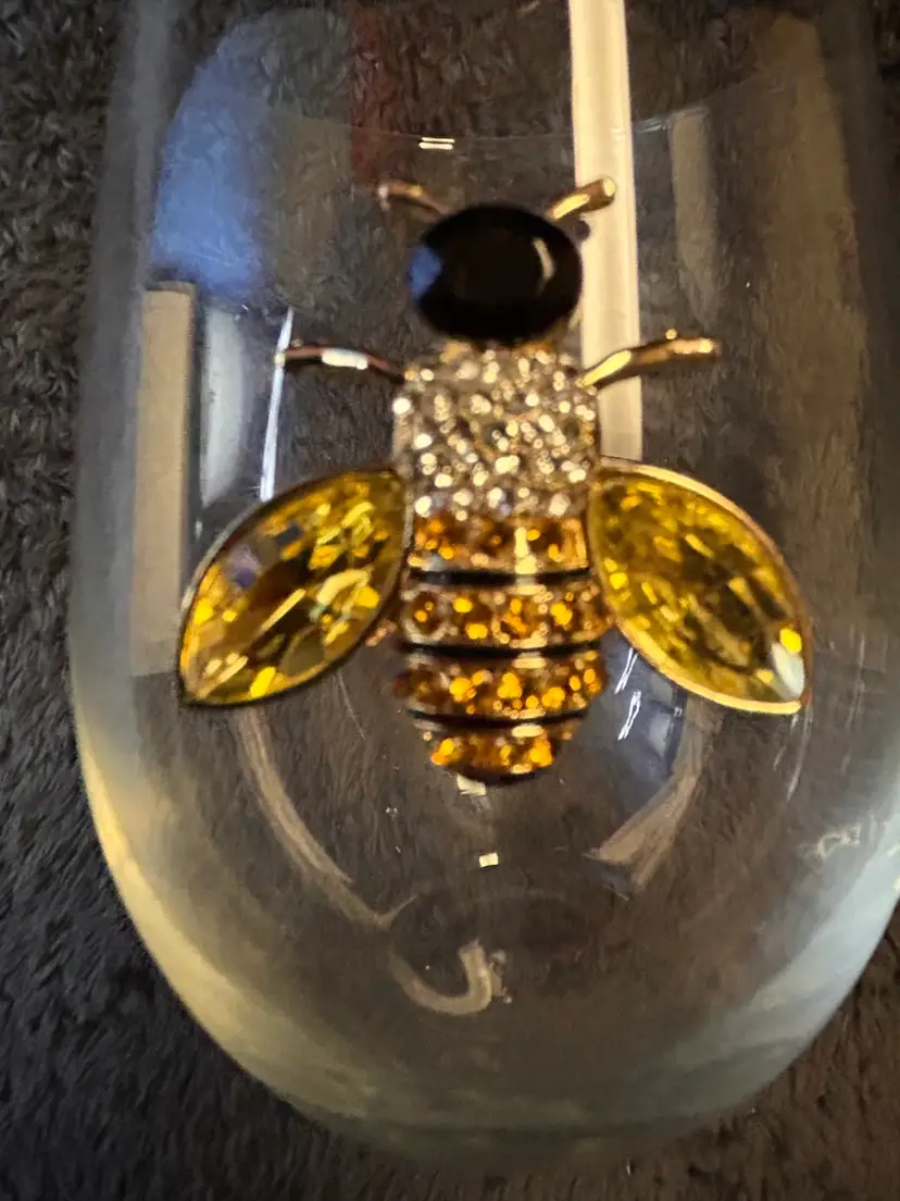 The Rachel Zoe Stemless Wine Glass with Gold & Rhinestone Bee Embellishment is a stylish and elegant addition to any home bar or dining table. Standing at 5”x 4”, this clear glass wine glass features a unique bee design adorned with gold and rhinestones, adding a touch of glamour to your wine-drinking experience