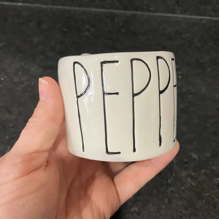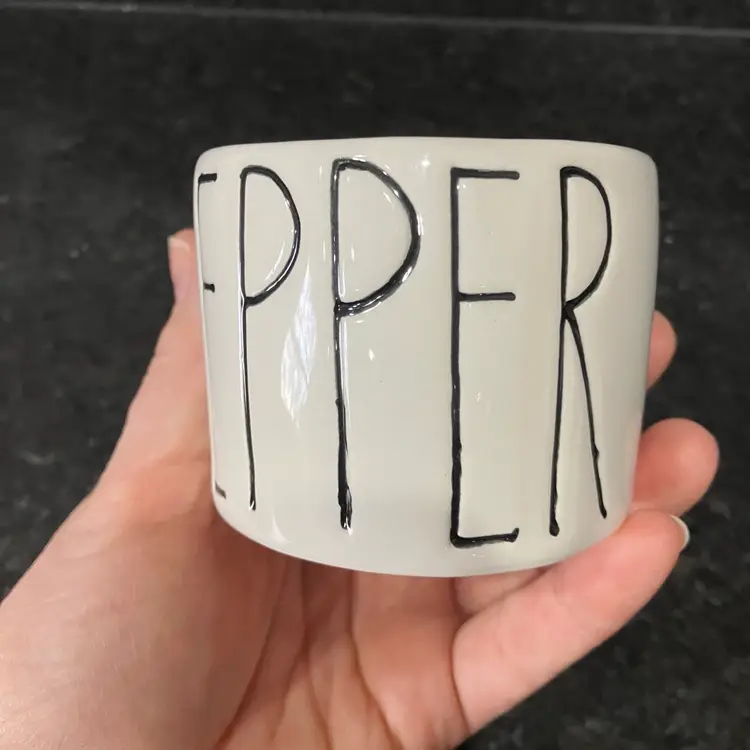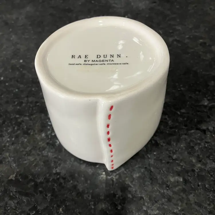 We represent our items to the best of our ability in photos and descriptions. Please look at our photos carefully, read our description completely, and ask any and all questions before buying from us. As with all Rae Dunn items, glaze imperfections and shape imperfections are common. Please zoom in on our photos so you are certain of what you are buying. We are a smoke-free home.