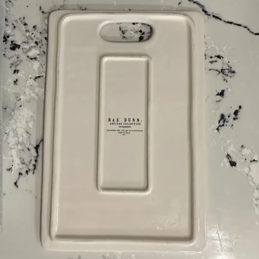 New, never used Rae Dunn cheese board. Minor scuffing on bottom from sitting on the counter. No chips.