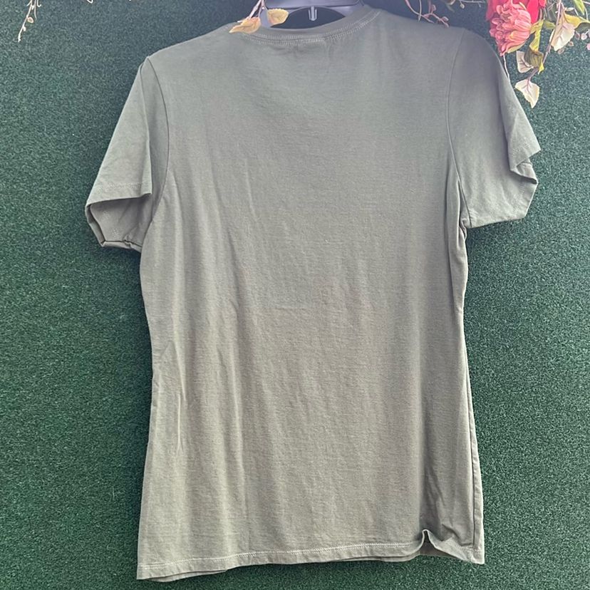 Rainbow, drum set port and Company hangtag. Army green. Size medium. pit to pit is 17 1/2 inches length is 25 inches.