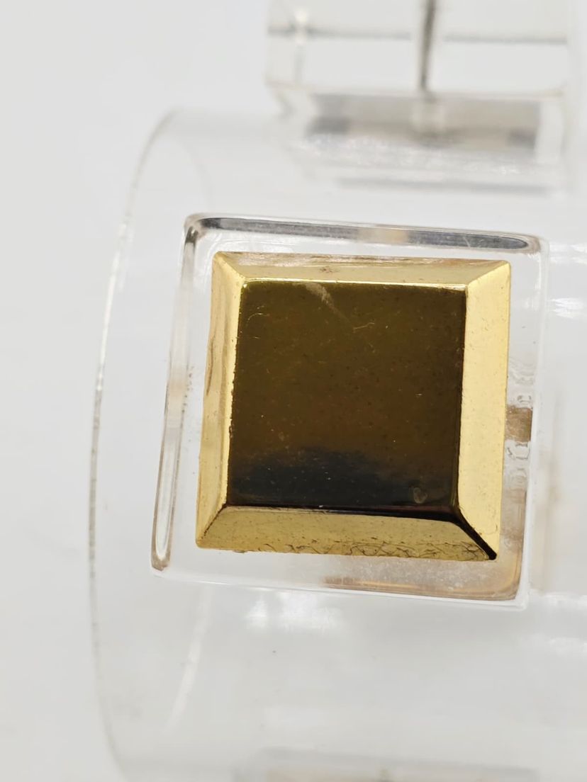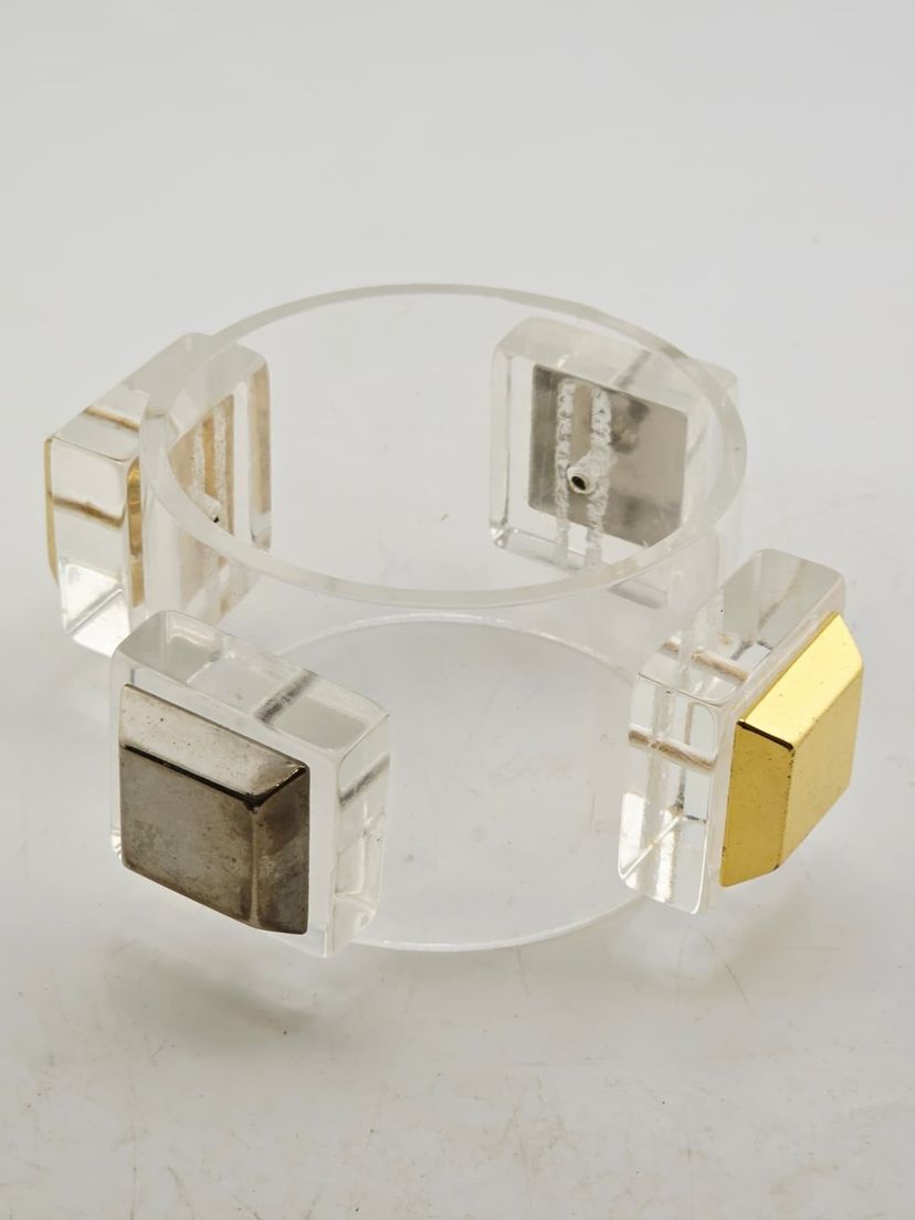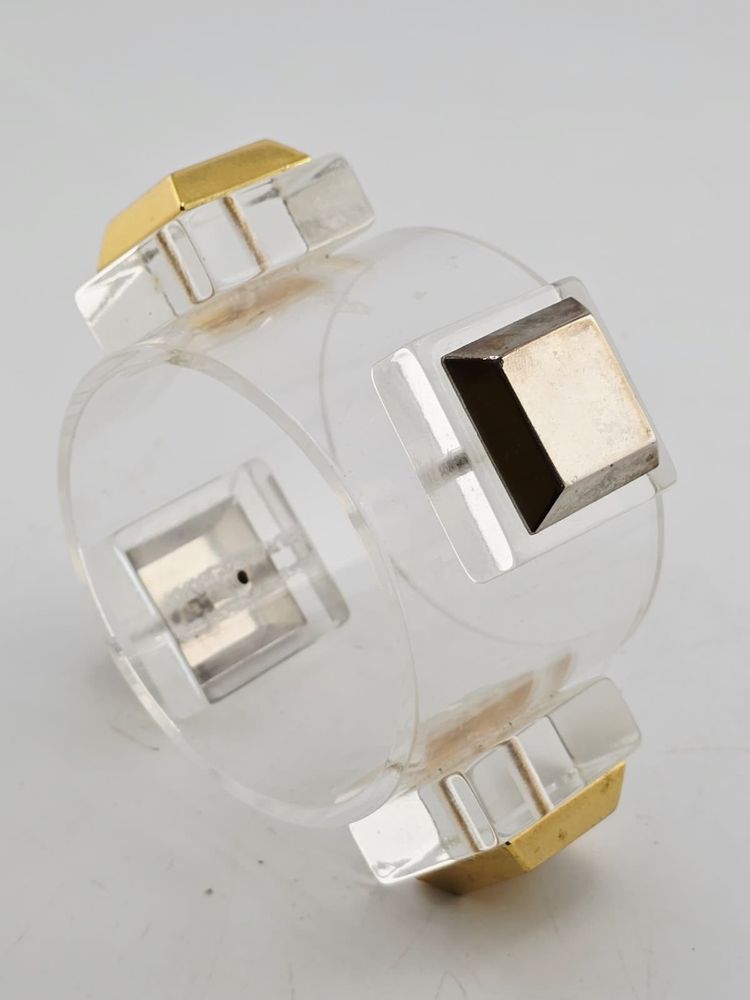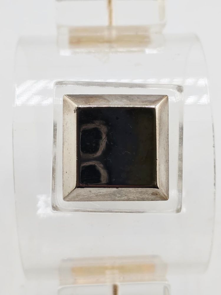 Rare Unsigned Julie Rubano Wide Lucite Cuff Bracelet With 2 Raised Metal Squares (A9076)