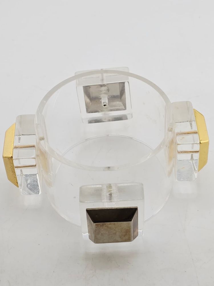 Size: 2" tall by 2.5" inner circumference Color: Clear, Gold, Silver Condition: Very good vintage Signed: None Details:. This was gotten years ago directly from Julie herself.