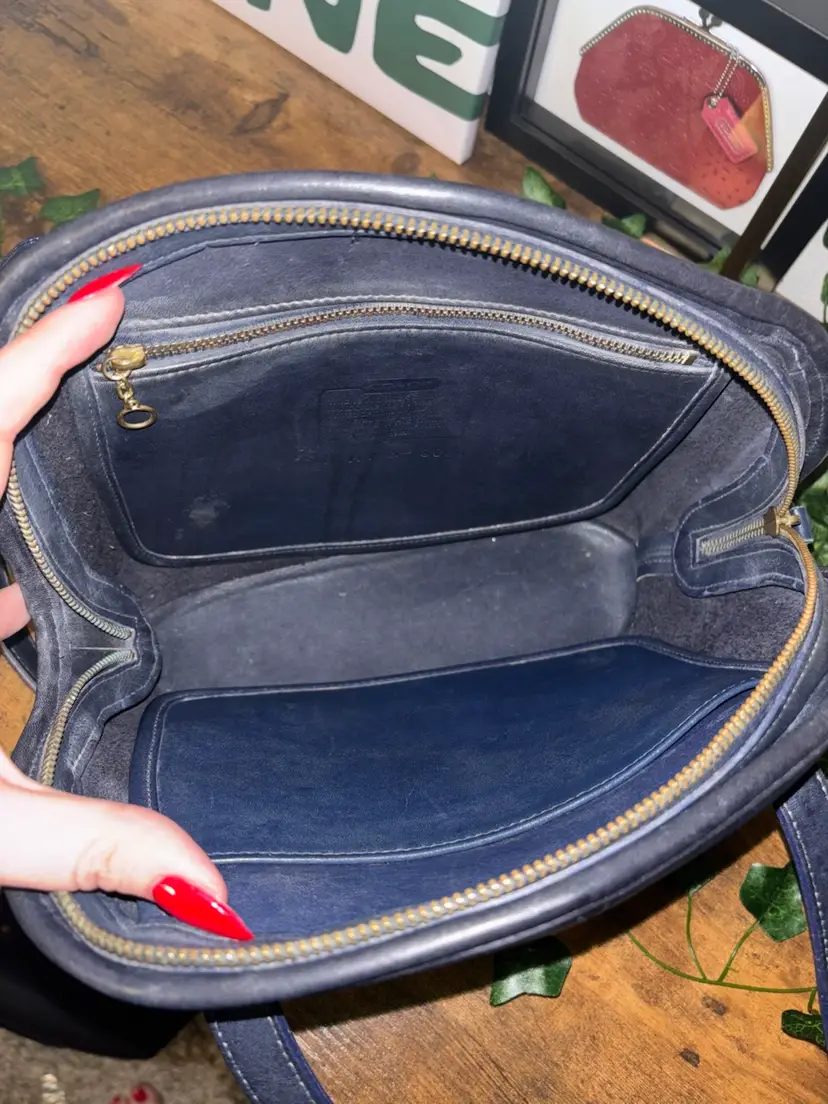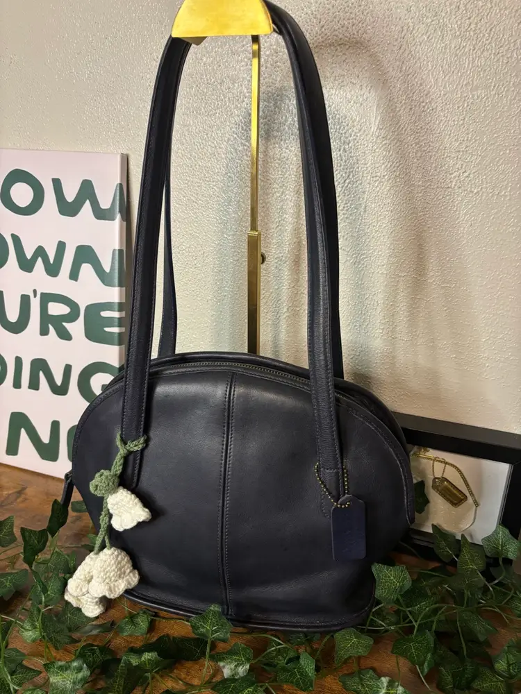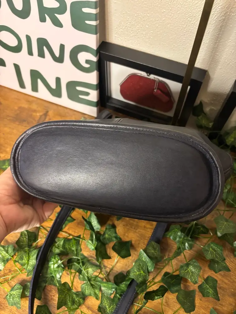1997 navy. Fully lined leather with hangtag. Crochet charm included. EUC.