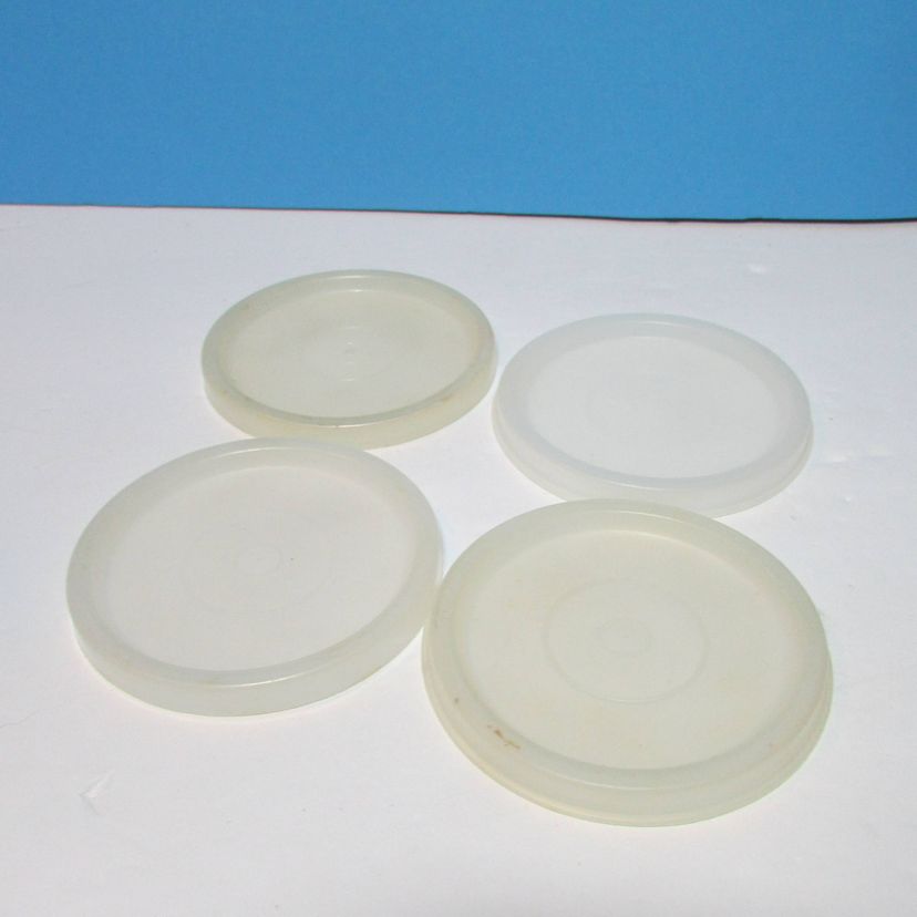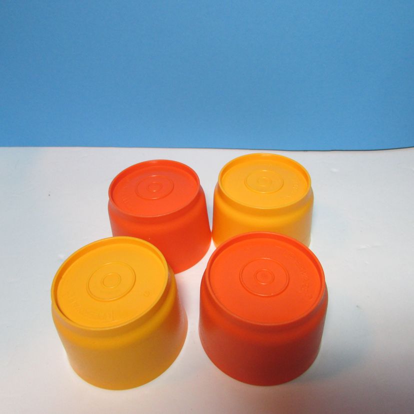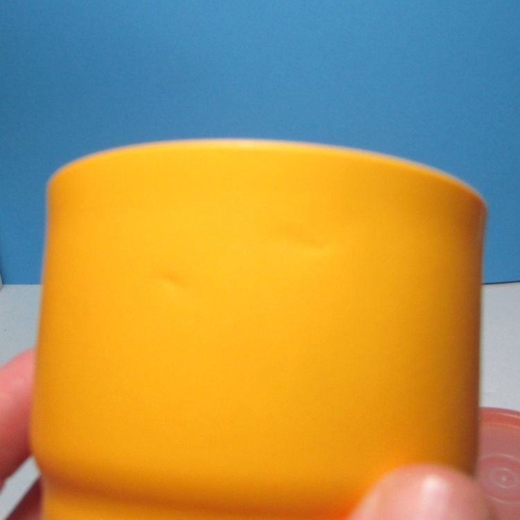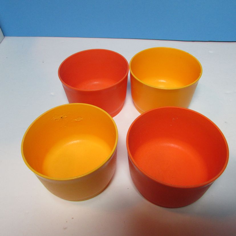 This fun set has one container that has some damage, it looks like it is melted and shows on other side. Still great to use this piece for craft storage, would not use for food. Each container is about 1 1/2" x 2 1/2" round. This is shipped from a smoke free home. Thanks for looking!