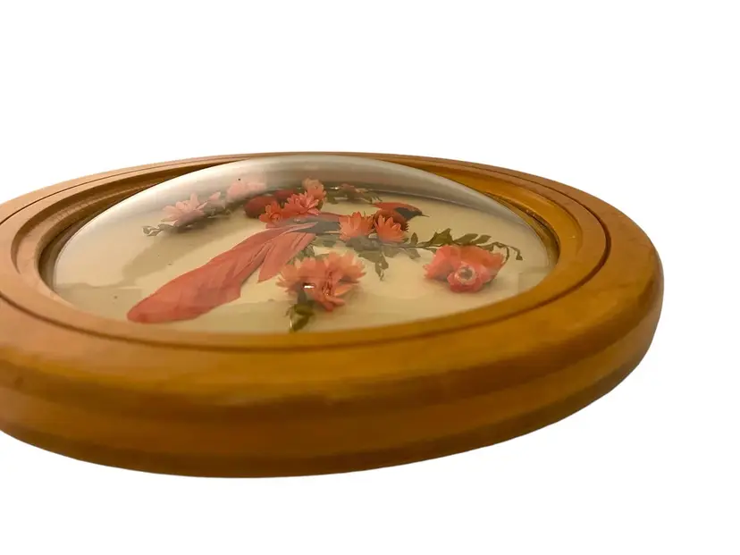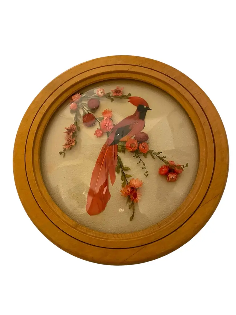 Made with real feathers & dried flowers. Diameter 6.5”.
