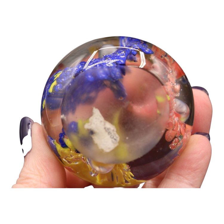 Red Blue Yellow Fireworks Paperweight 2” Tall 7.8oz. No chips or cracks.