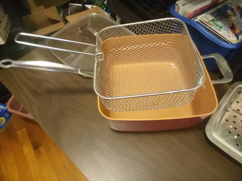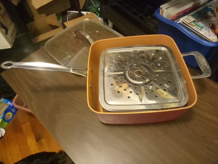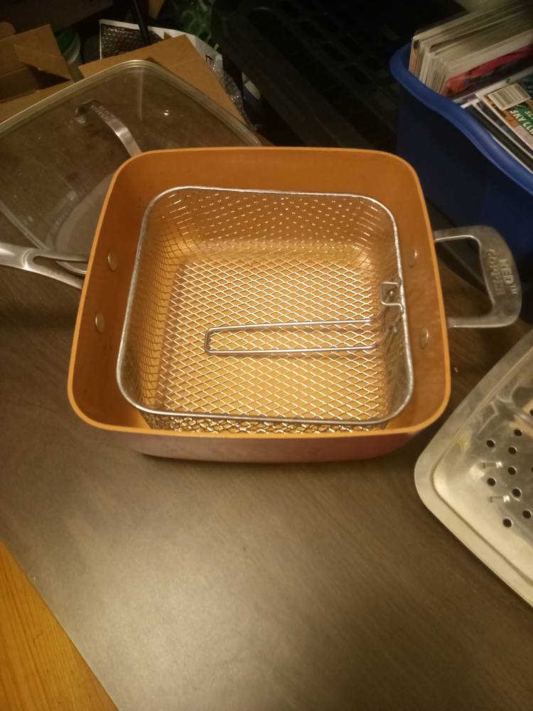 4 Piece Red Copper Steamer/Deep Fryer 10" Square stove top pan. By Bulbhead.com