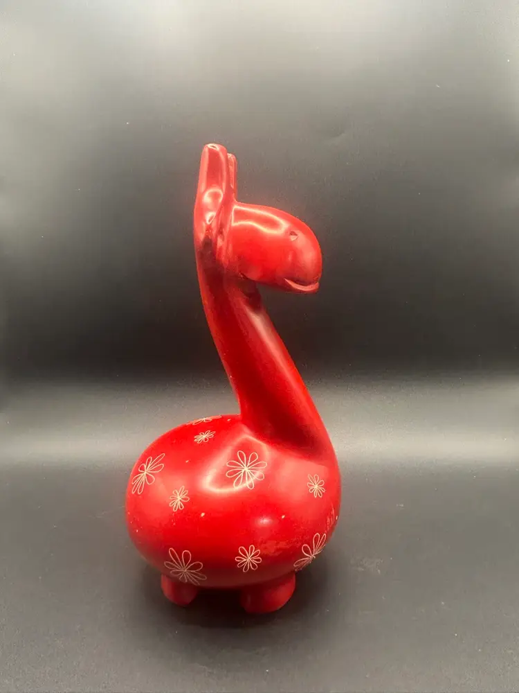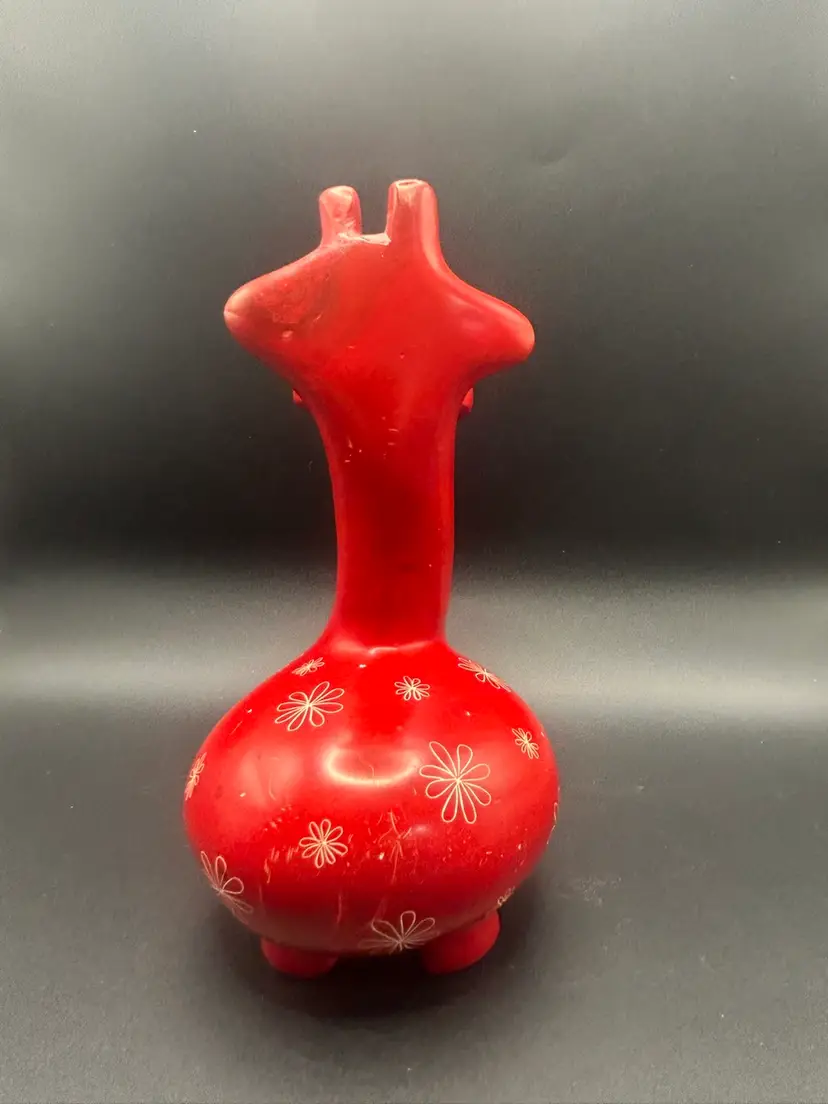 This heavy red giraffe with flowers is in great condition, there are some scratches on the backside. He is approximately 7 3/4” tall and 4 1/2” wide. He weighs approximately 3 pounds.