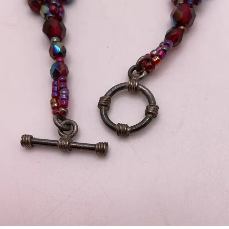 Red Swarovski Crystal Bead Bracelet with Toggle Artisan Made 8”