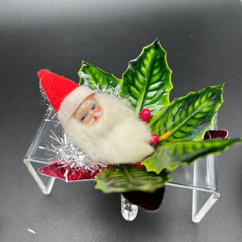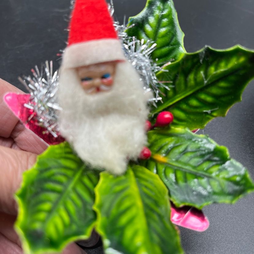 Everything used to make this reflector ornament is vintage, including the little Santa from the 1950s, that came from an old corsage