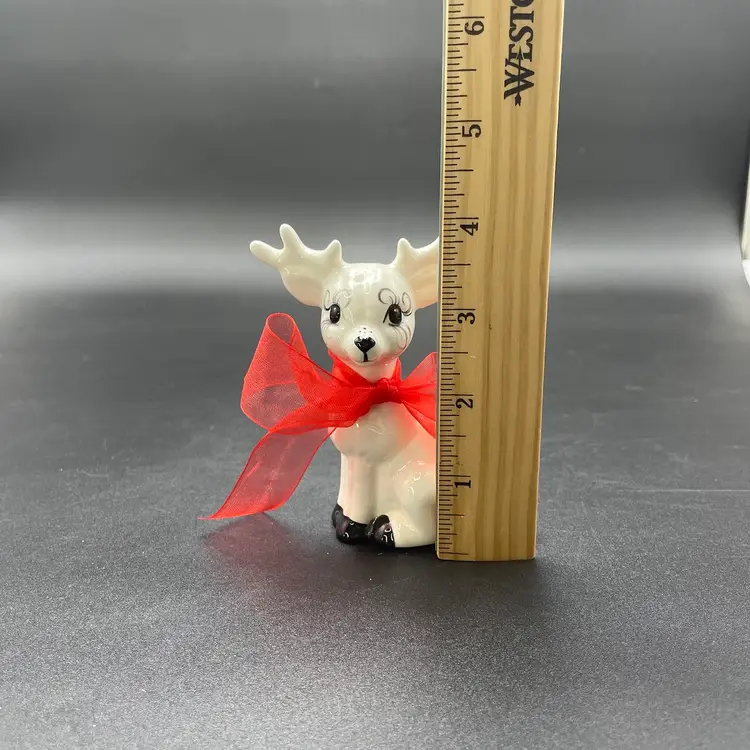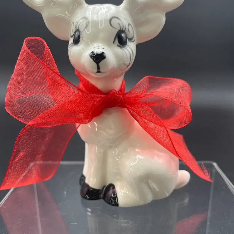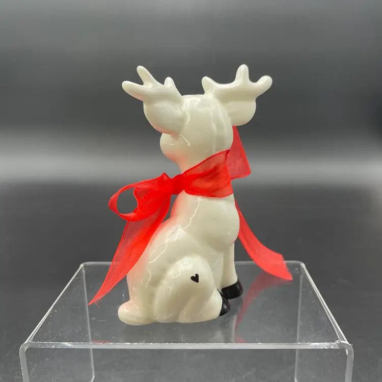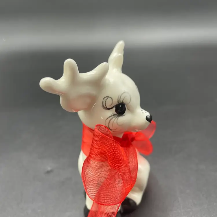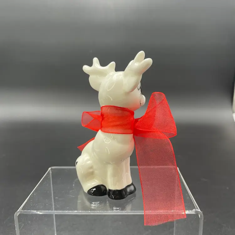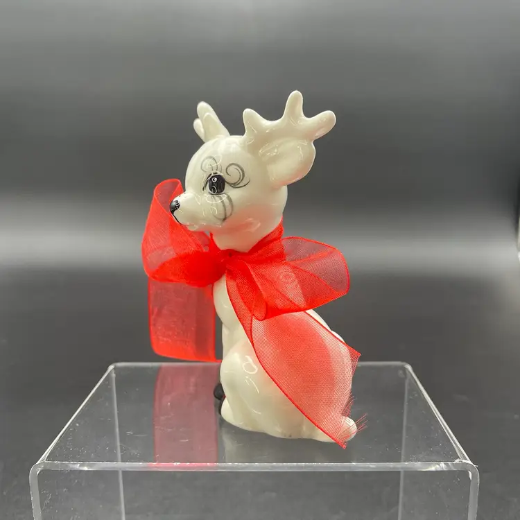 This is a handmade white ceramic reindeer figurine. Signed on bottom. Measures approximately 4" tall x 2.5" wide. No chips or cracks.