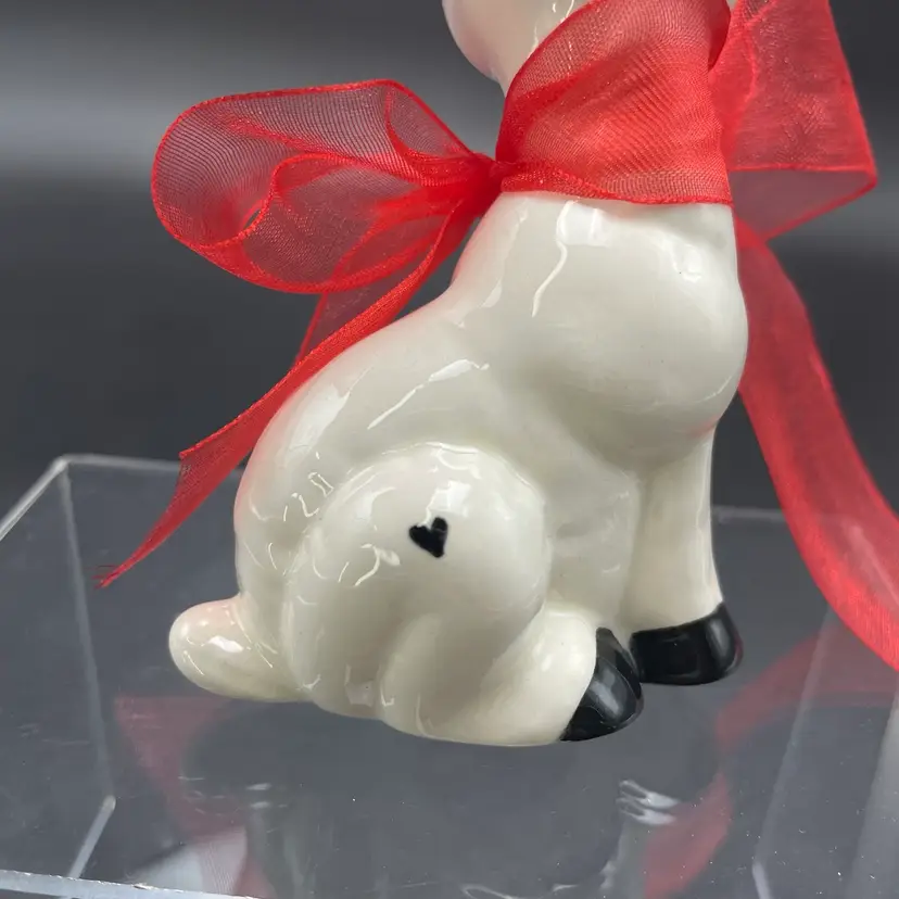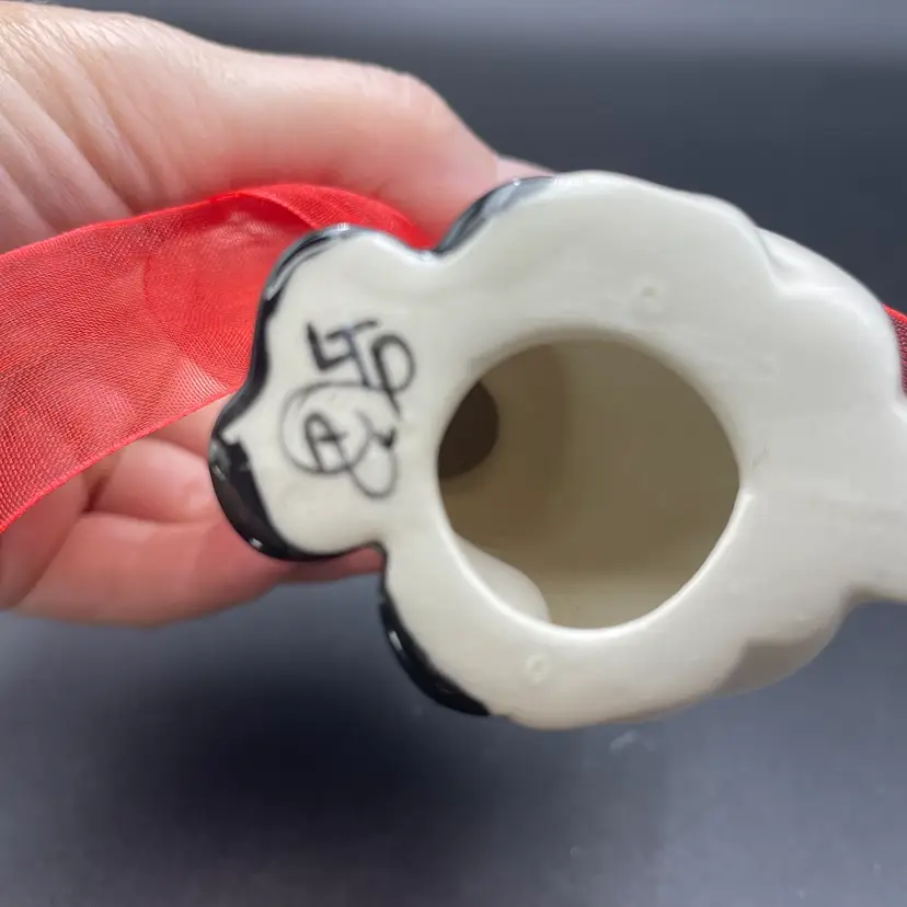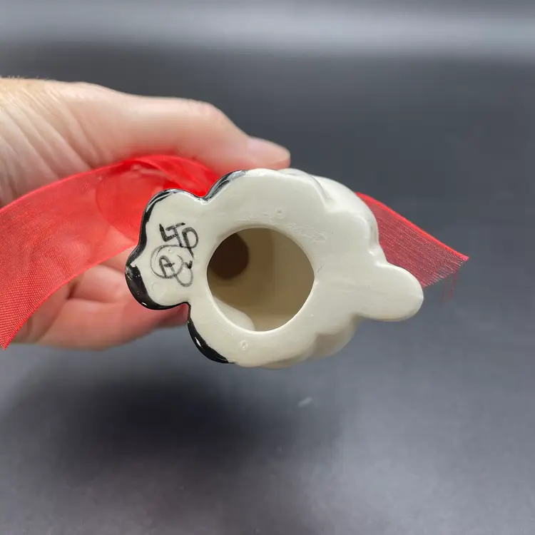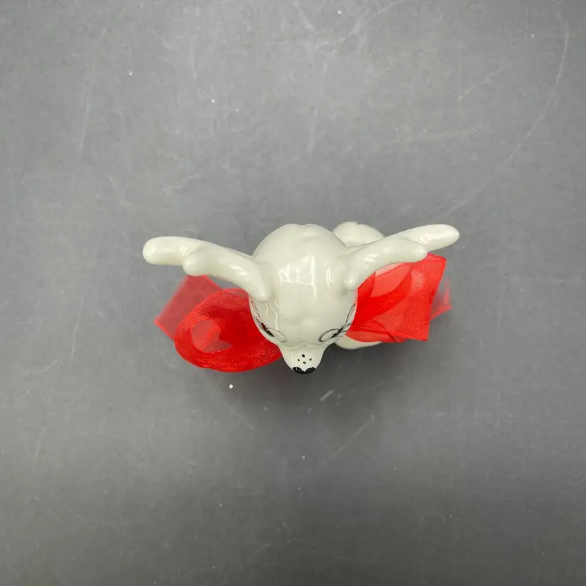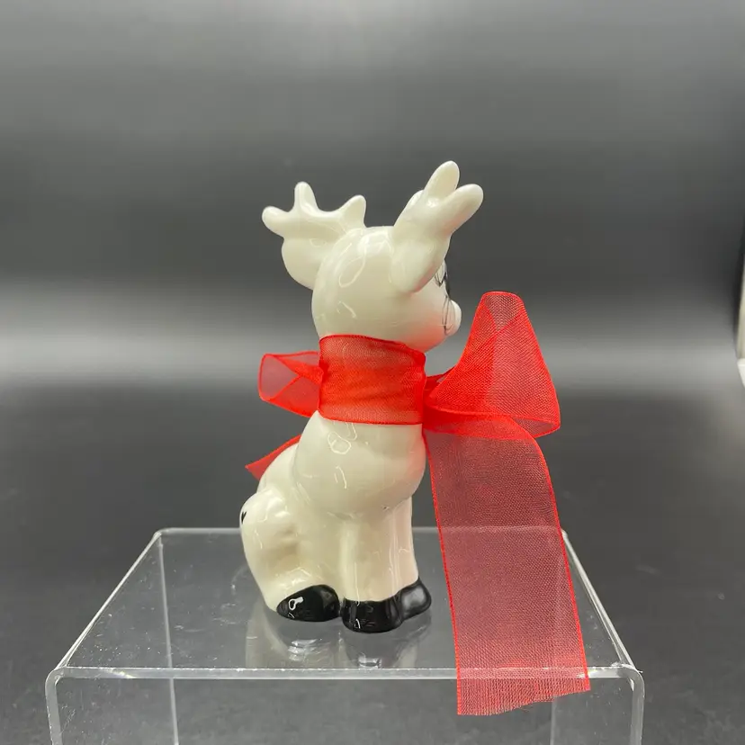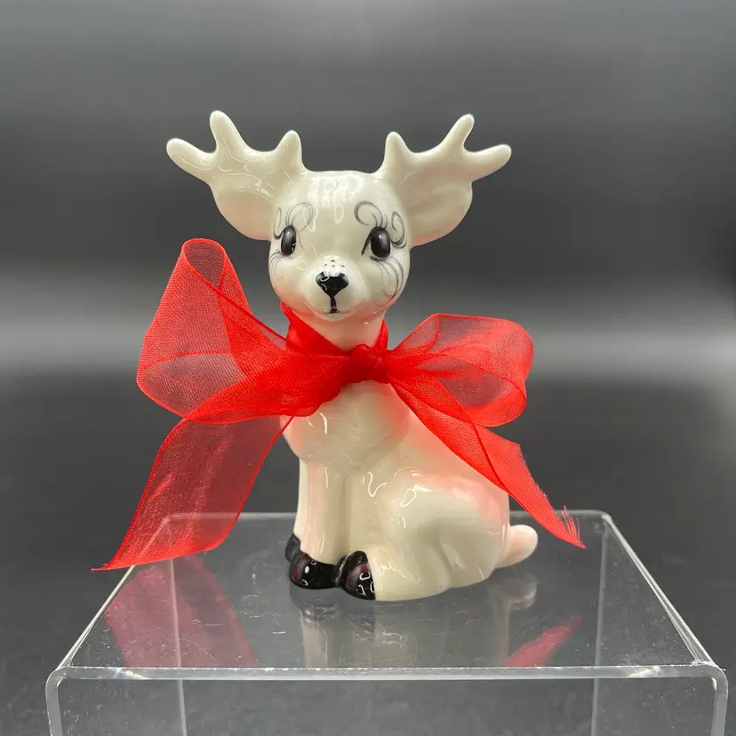 This is a handmade white ceramic reindeer figurine. Signed on bottom. Measures approximately 4" tall x 2.5" wide. No chips or cracks.