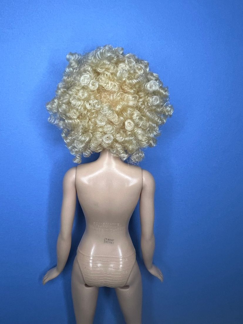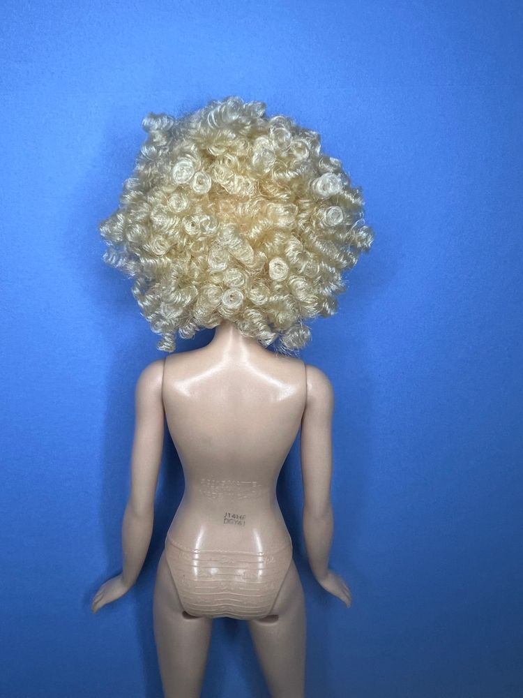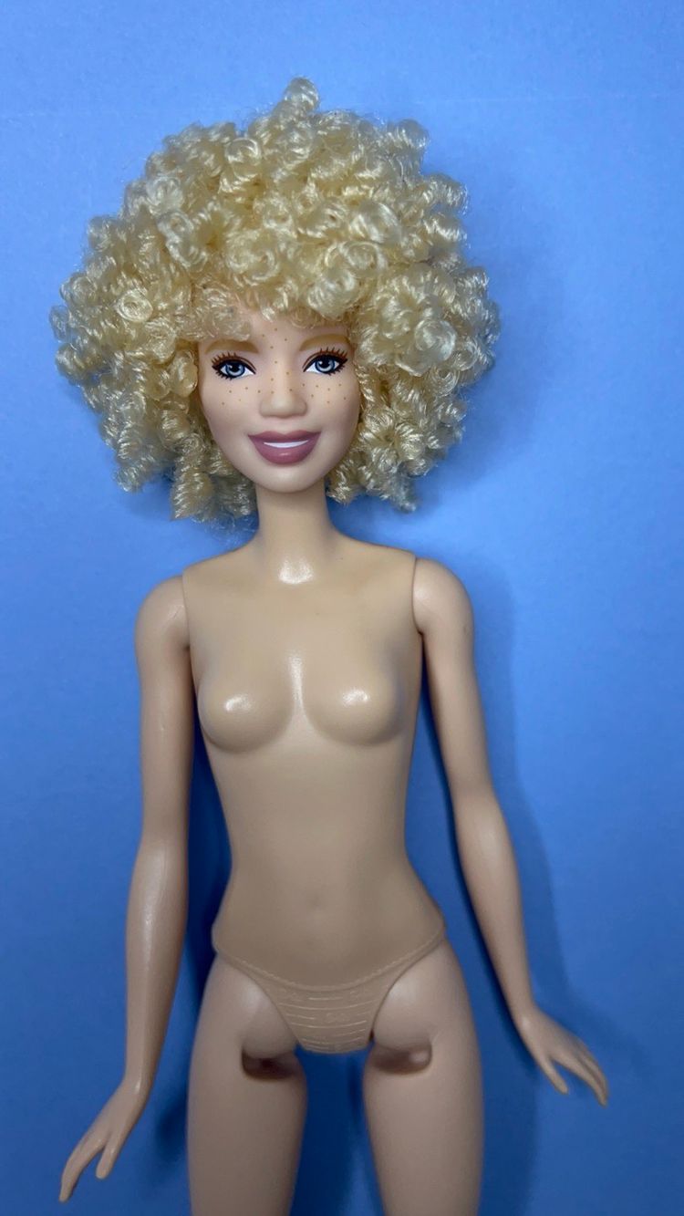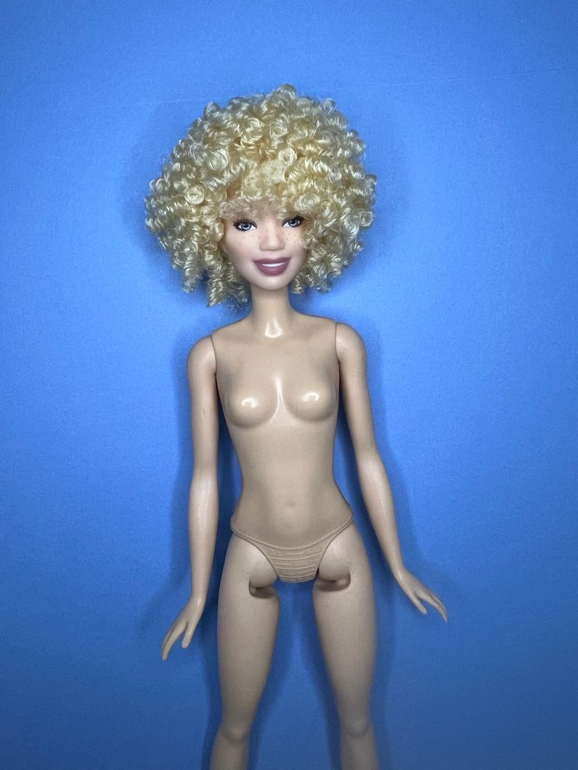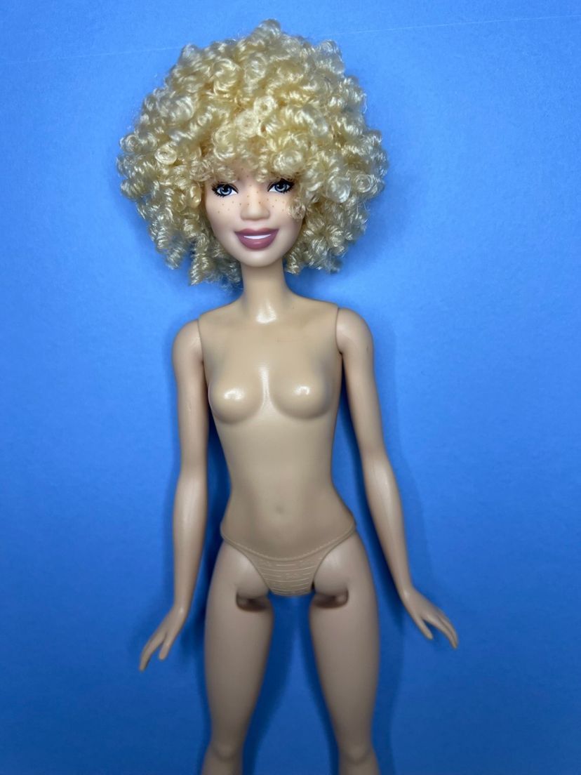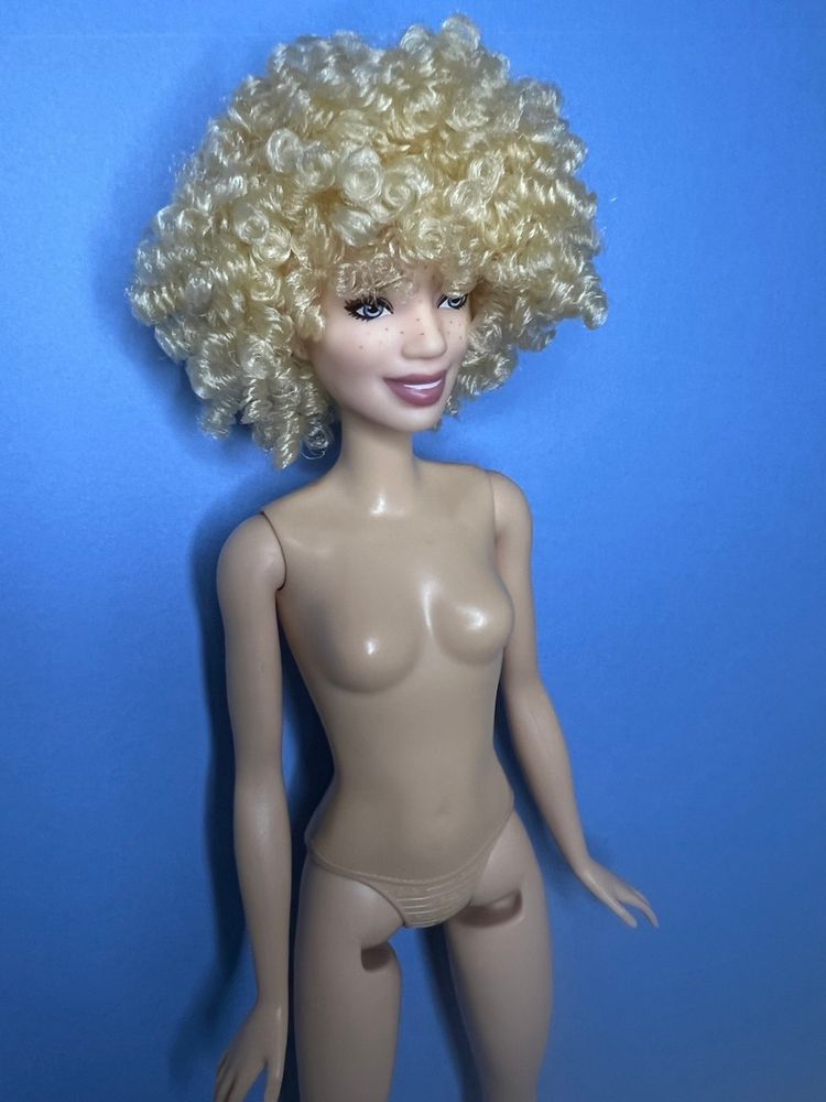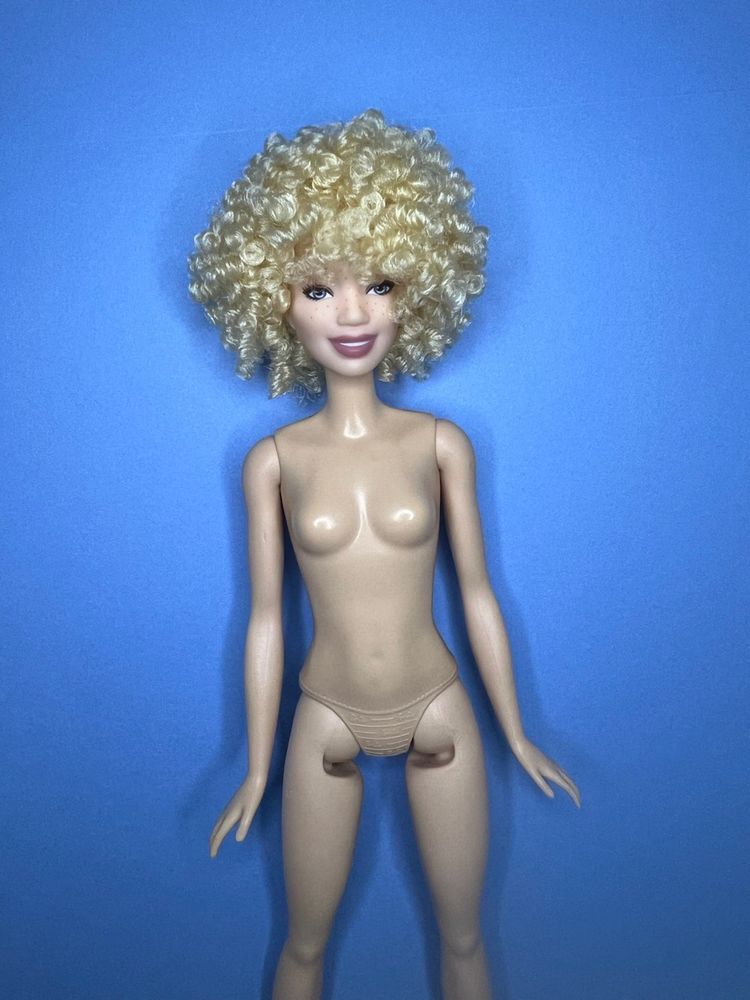 Rerooted Tight blonde curls, blue eyes, light skin, freckles, rare Barbie doll. Albino afo American barbie.