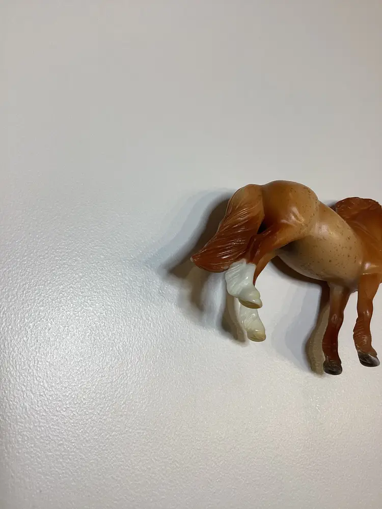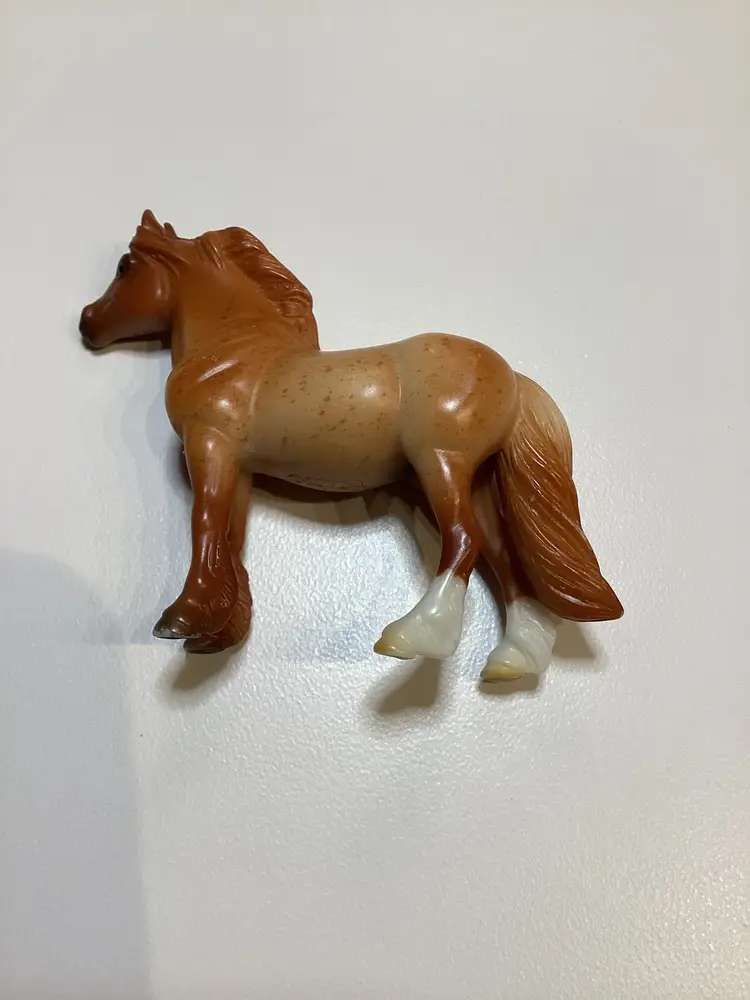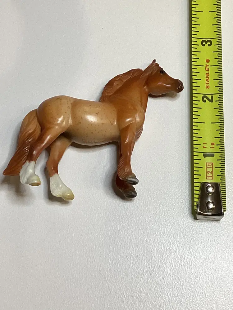 The Retired Breyer Horse Stablemate #5411 from the Pony Care Set is a red roan Highland G3 model horse made of plastic. This collectible piece is part of the Breyer brand's line of stablemates, measuring approximately 3 x 3 inches in size. Ideal for horse enthusiasts and collectors, this plastic horse model captures the essence of a realistic and detailed animal figure.
