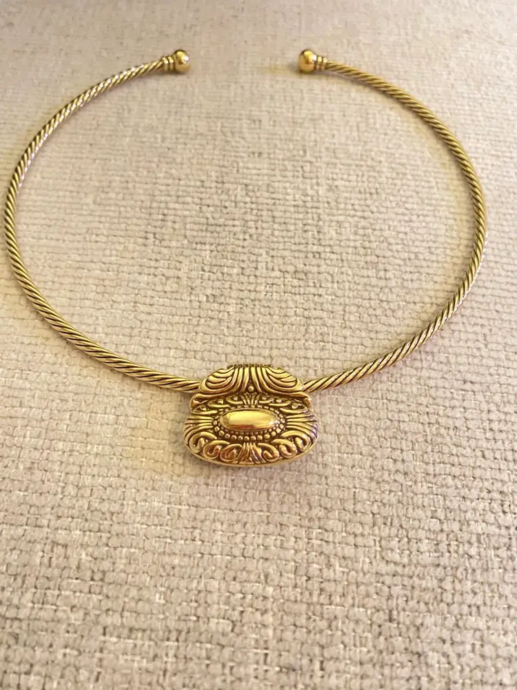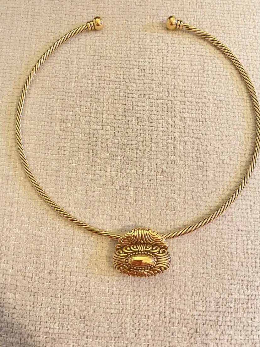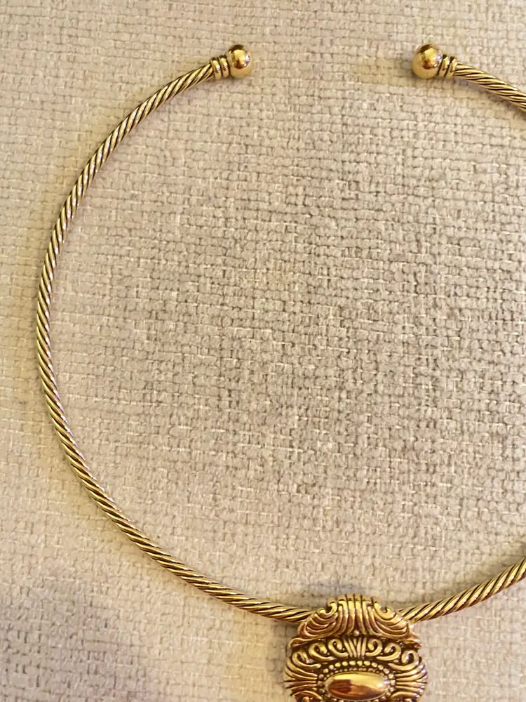 Gold Tone Twisted Wire Choker with Avalon Pendant. Classy!!!