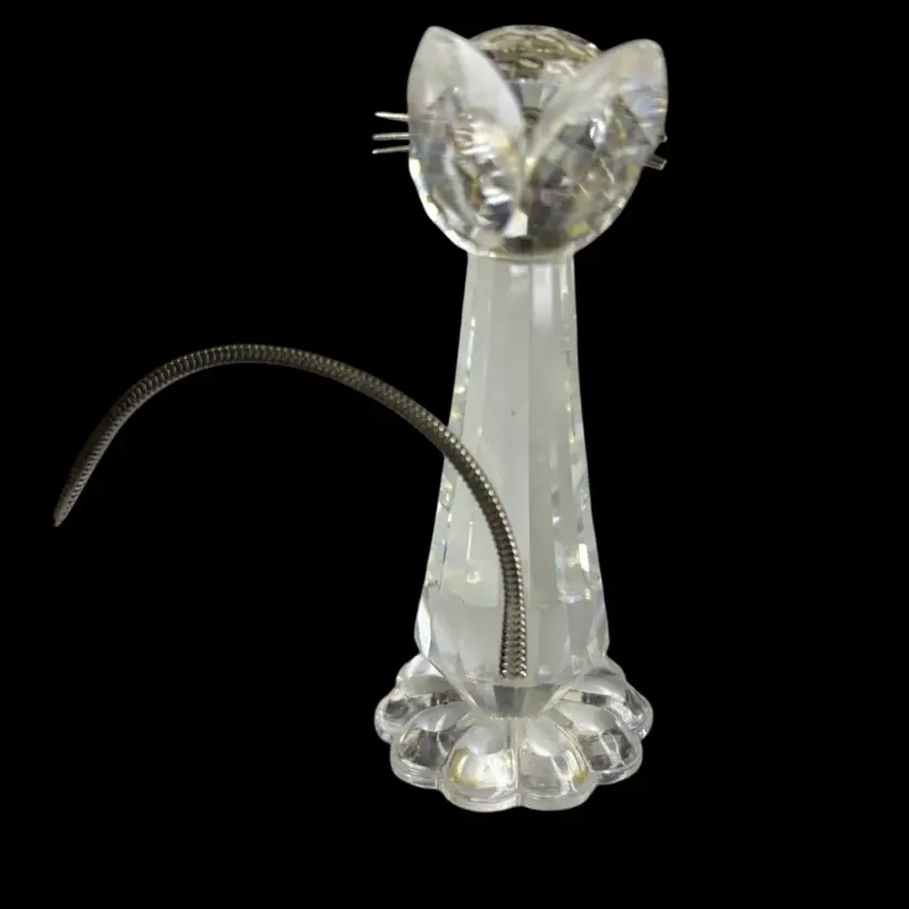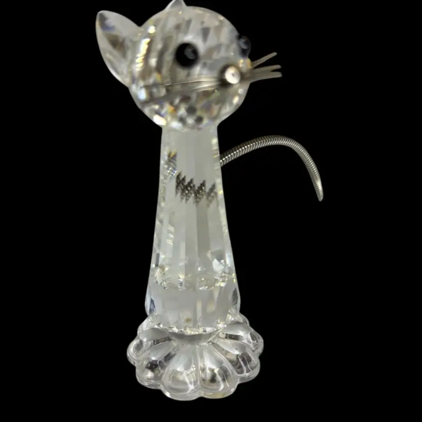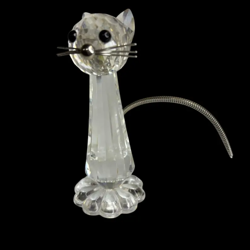 Black eyes, metal whiskers and tail. Code # 183274. Made of clear faceted crystal. 2” tall. No chips or cracks