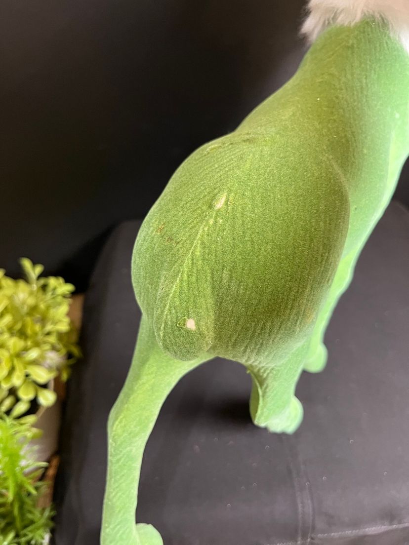 Oh....The vignettes you could create with this handsome fellow. Has 2 very small "rub areas" on the seam of his rump and on tail. He is in really good pre loved condition. It measures approx 16" H, 12" W, 2.75" Deep, 7 Oz