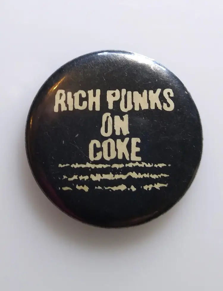Rich Punks On Coke Vintage Pinback Button Badge Retro