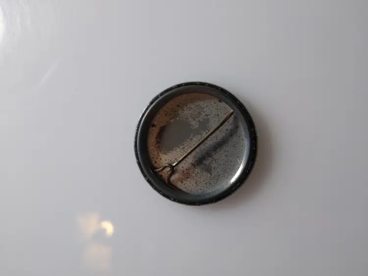 Vintage metal pinback button badge. Has age wear. Size is 1.25".