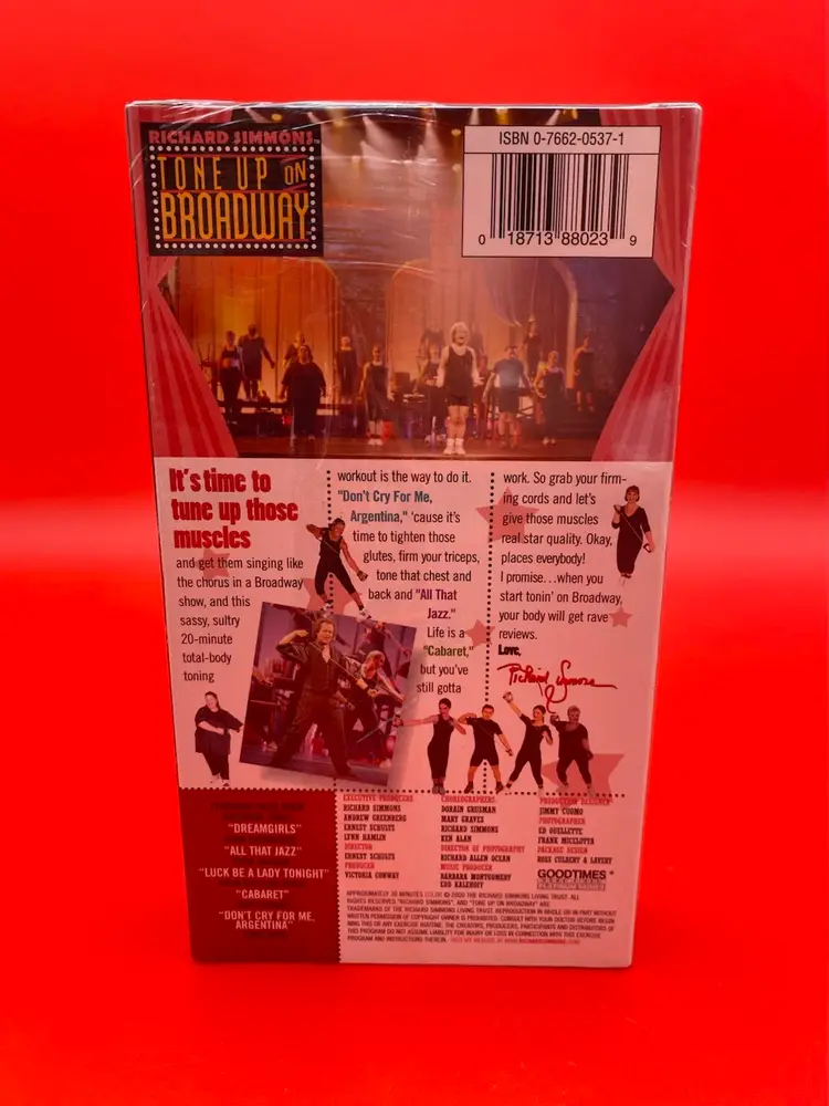 You are purchasing one Richard Simmons: Tone Up on Broadway Complete Toning Workout VHS by GoodTimes Platinim Seies from 2000. This VHS is sealed in its original packaging.